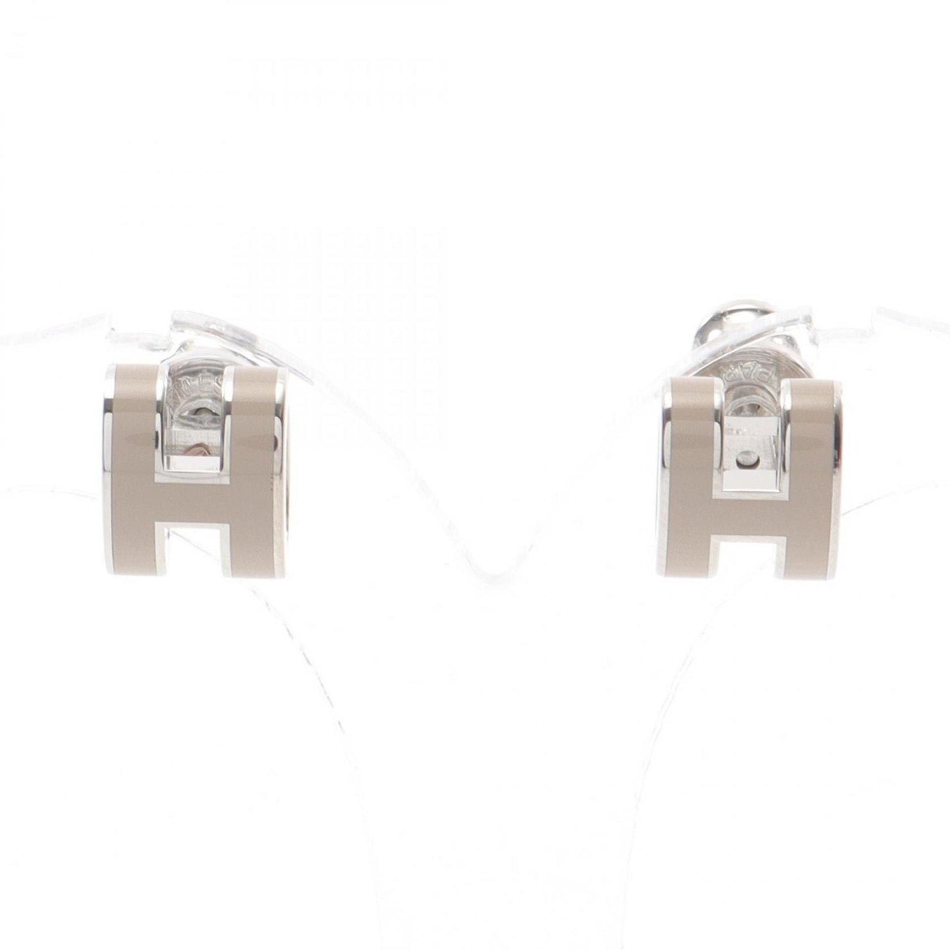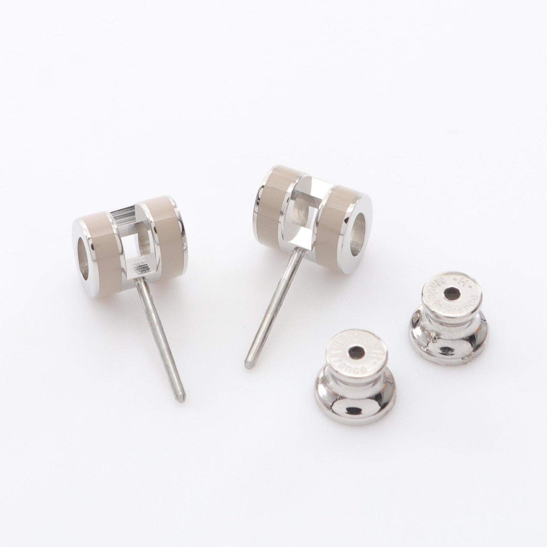 Hermes Hermès MINI POP H earrings in stainless steel for women silver and beige.