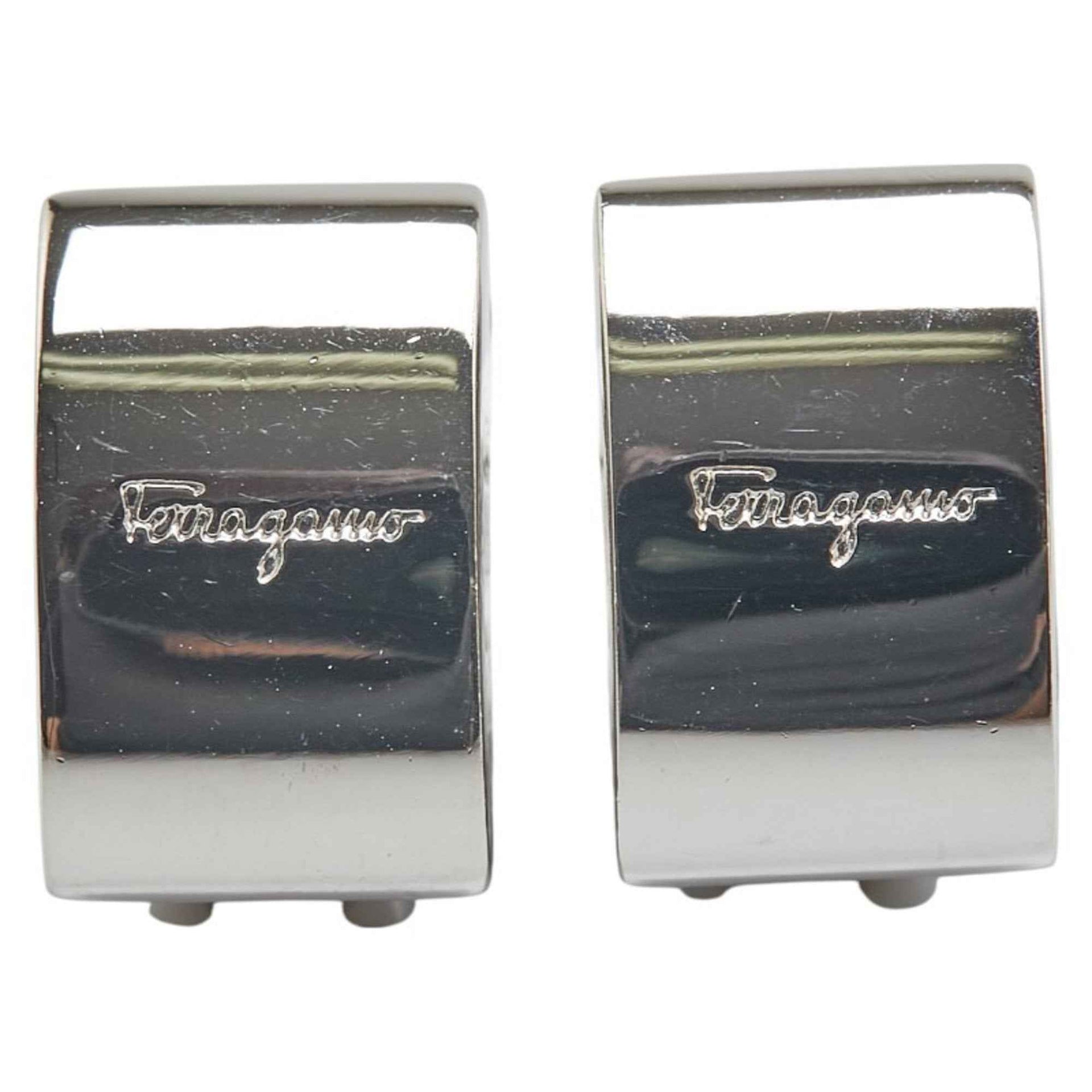 Salvatore Ferragamo logo earrings in silver metal for women.