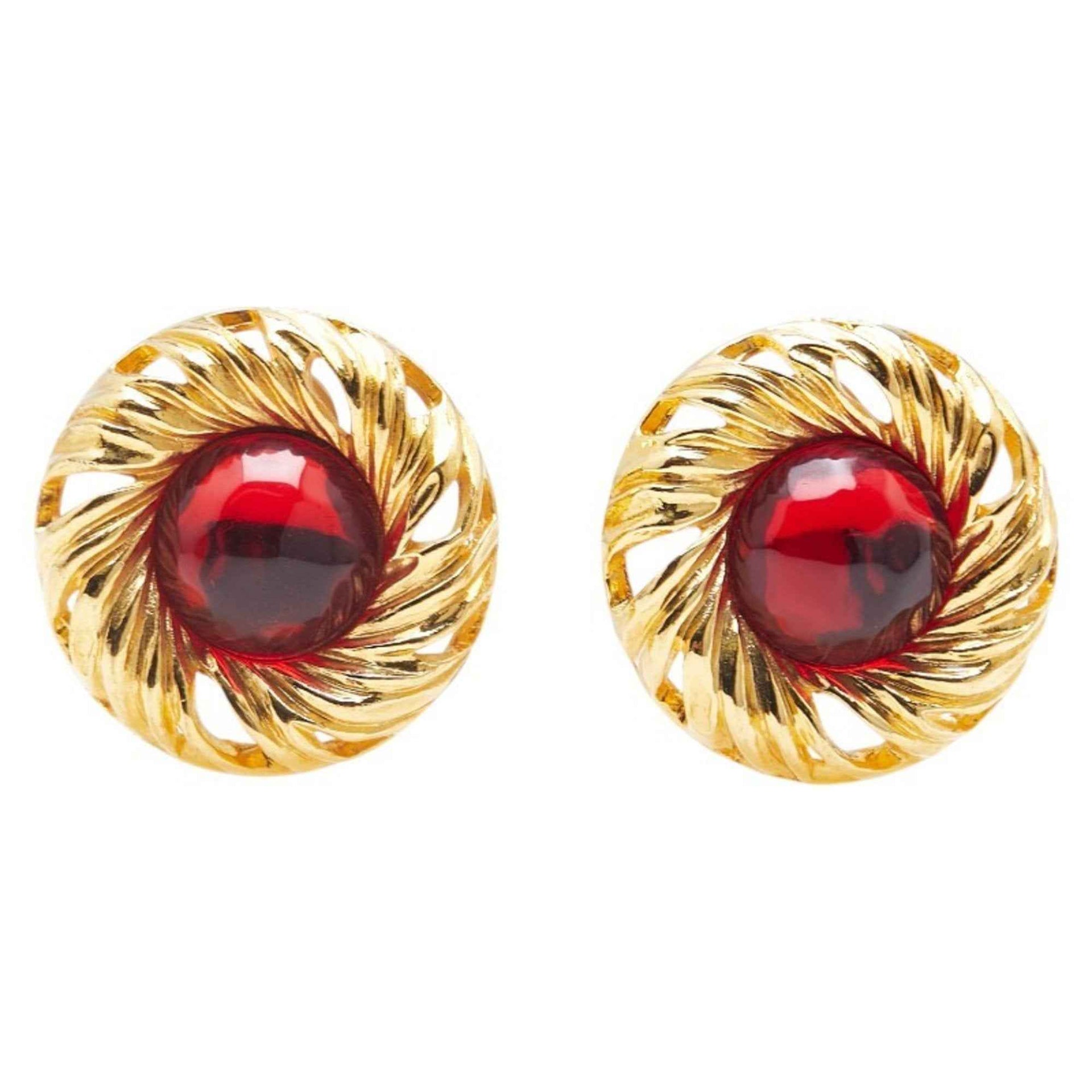 Yves Saint Laurent Saint Laurent Round Earrings with Color Stones, Gold and Red Plated, Women\'s, SAINT LAURENT