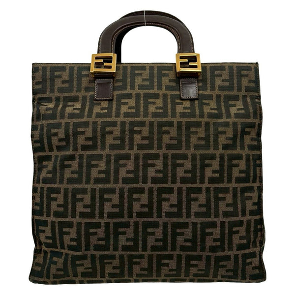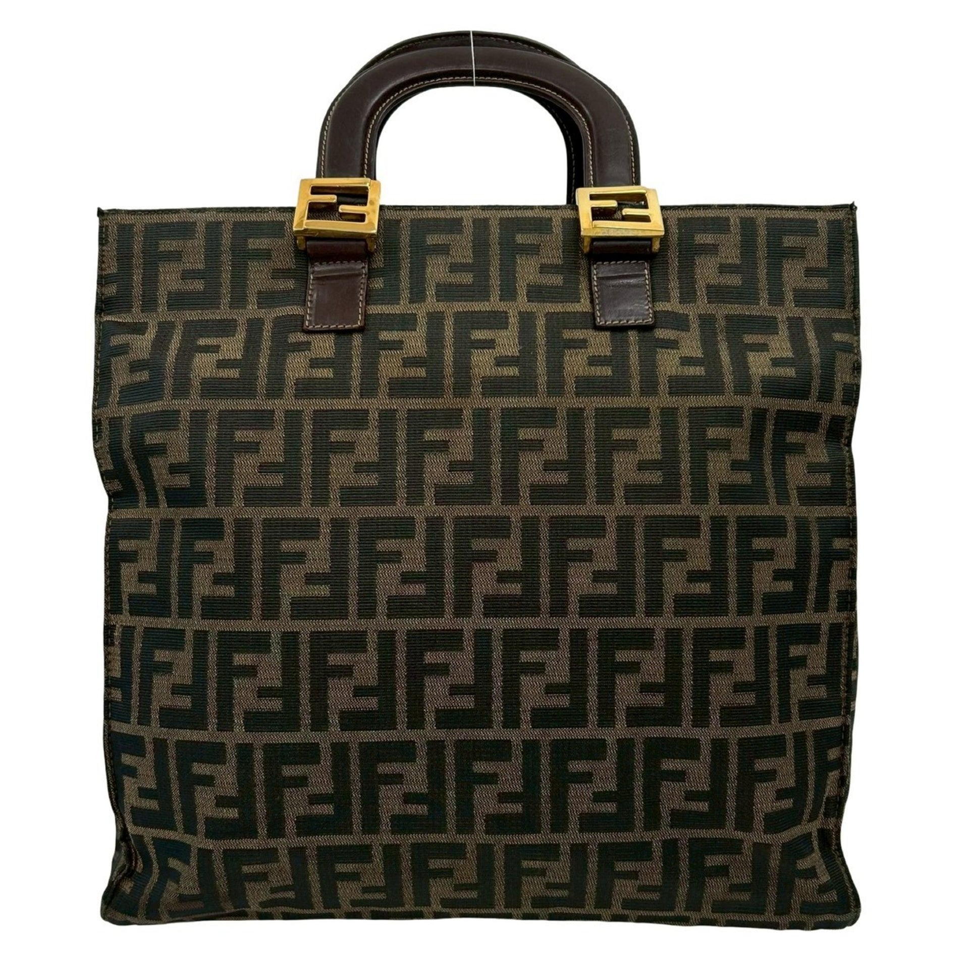 FENDI Zucca FF pattern canvas and leather handbag/tote bag in brown, khaki, black (18803)