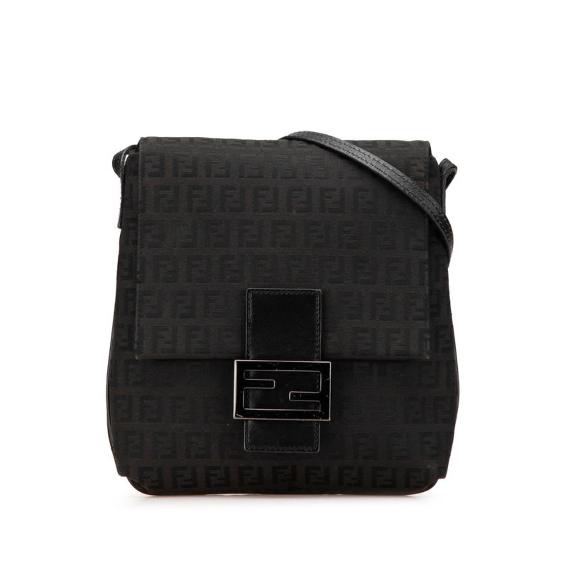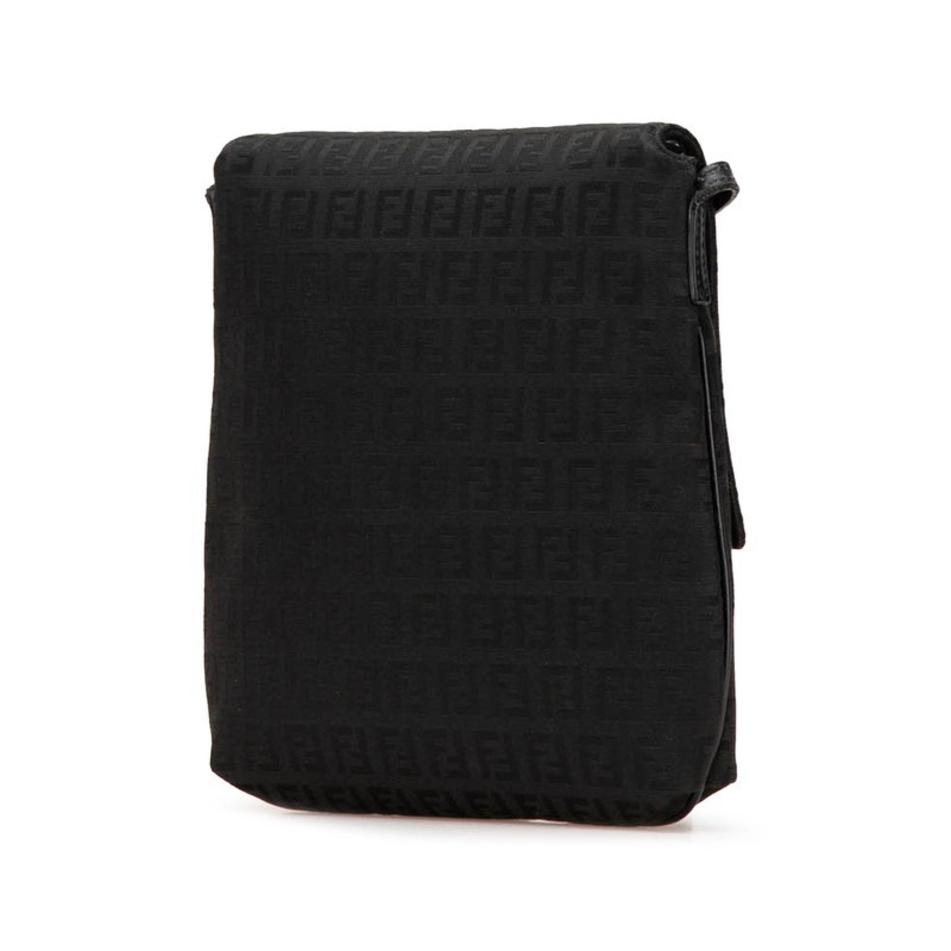 FENDI Zucchino Shoulder Bag 8BT075 Black Canvas Leather Women\'s