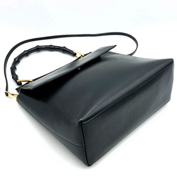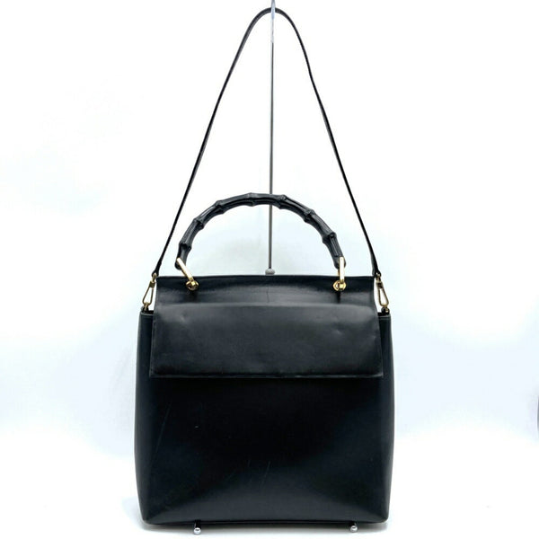 GUCCI 001 1998 Handbag Bamboo Leather Black Women\'s