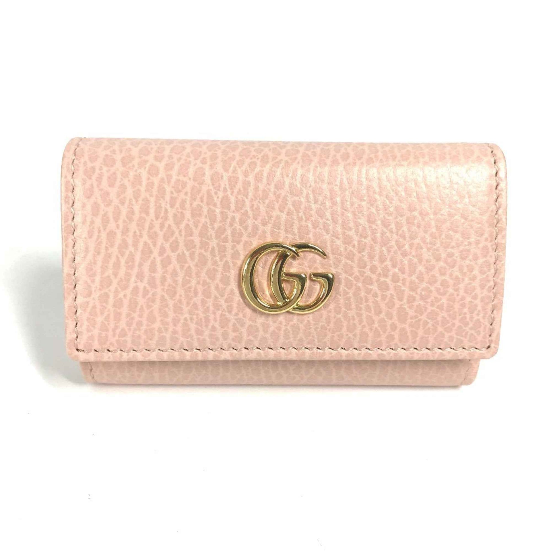 GUCCI 456118 GG Marmot Double G 6-Ring Key Case, Leather, Women\'s, Pink