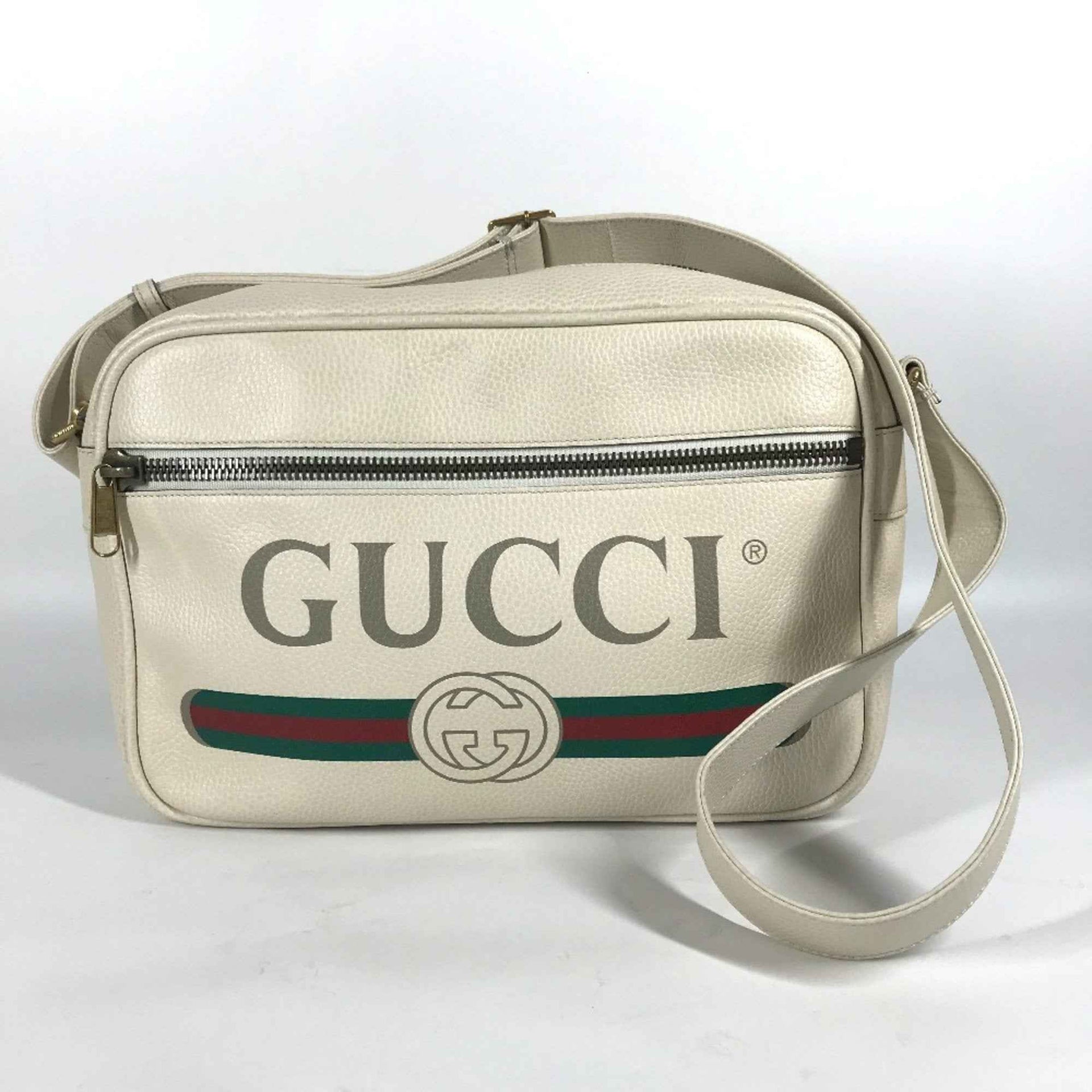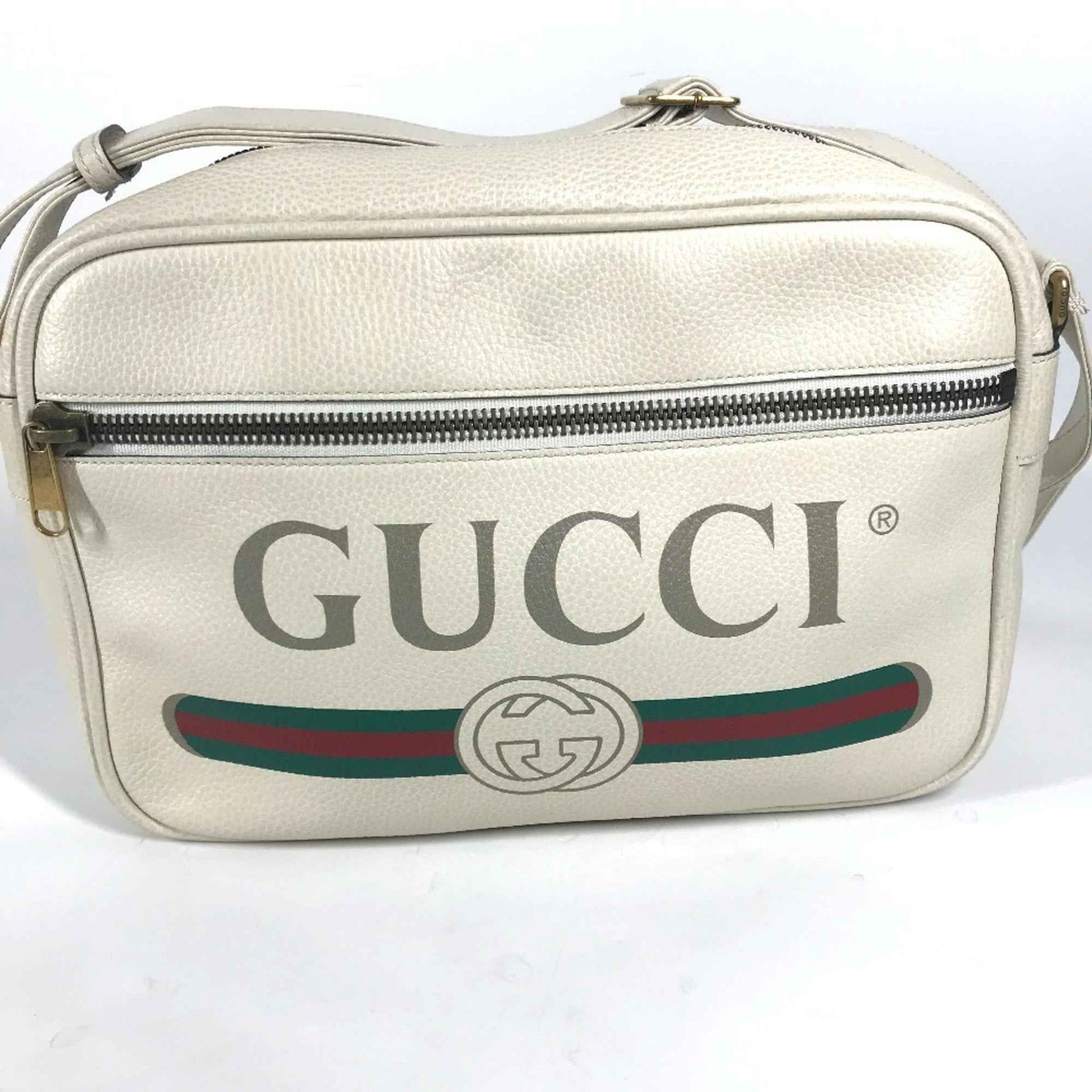 GUCCI 523589 Logo Print Messenger Bag Shoulder Leather Women\'s White