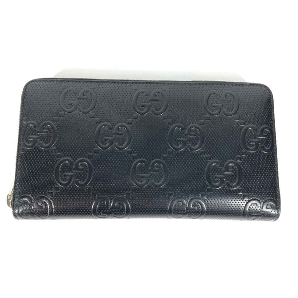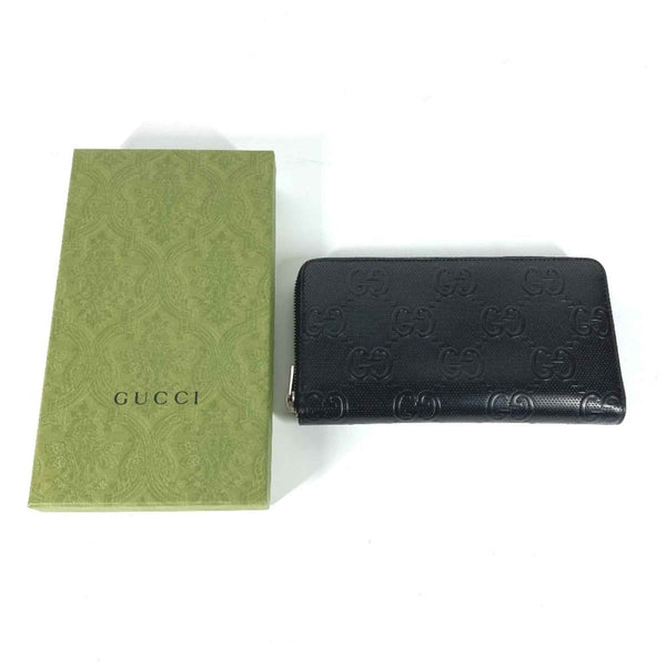 GUCCI 625563 GG Embossed Travel Case Organizer Round Zip Wallet Long Leather Men\'s Black