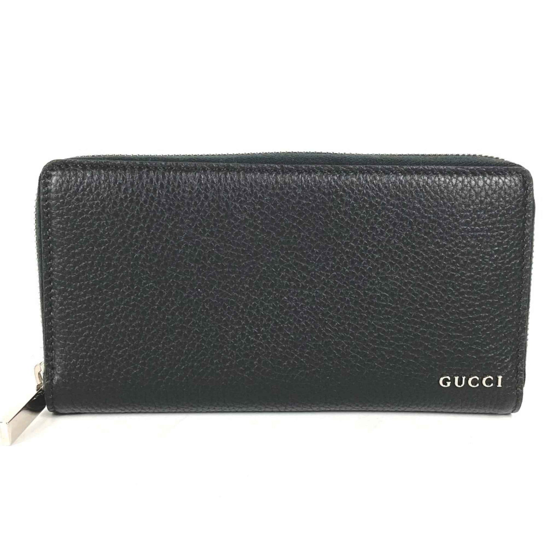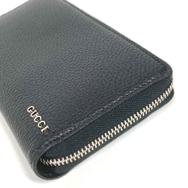 GUCCI 771154 Logo Zip-Around Wallet, Men\'s Leather, Black, Like New