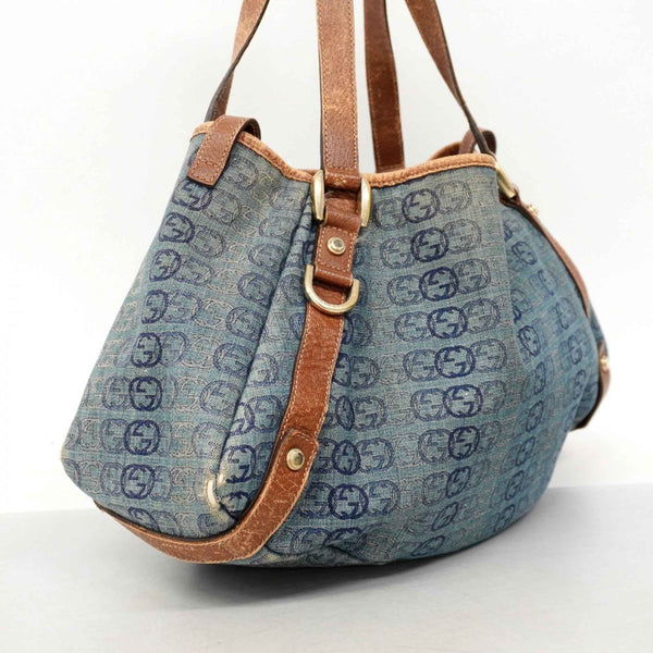 Gucci Abby Tote Bag 130736 Denim Blue Brown Champagne Women\'s