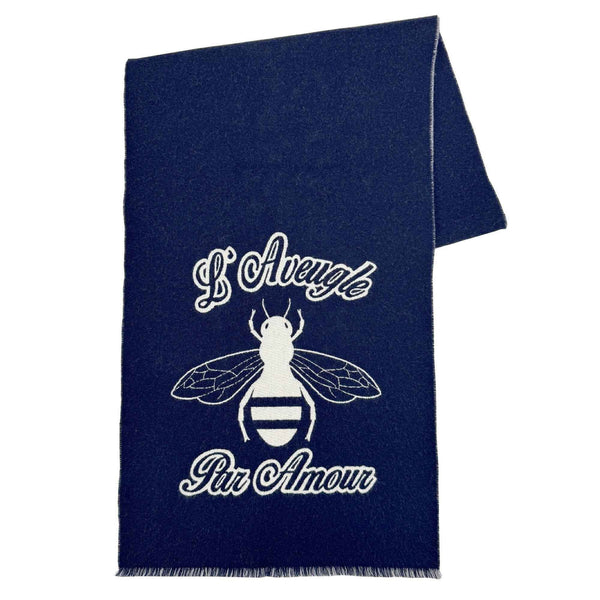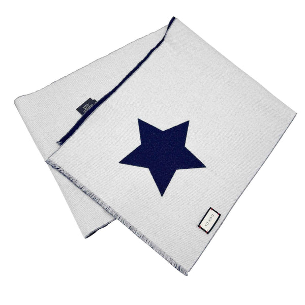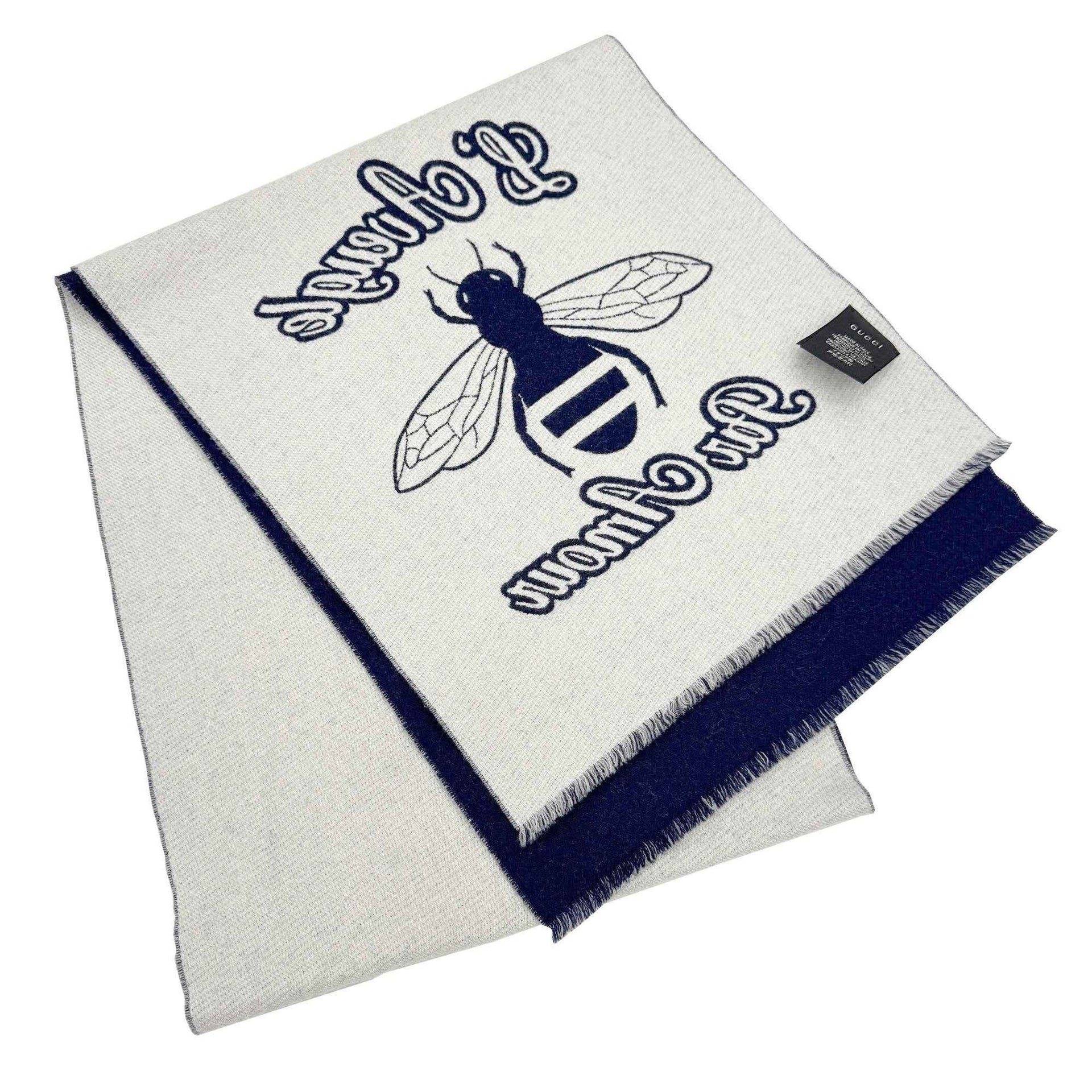 GUCCI Bee×Star scarf in navy and white for men women, wool.