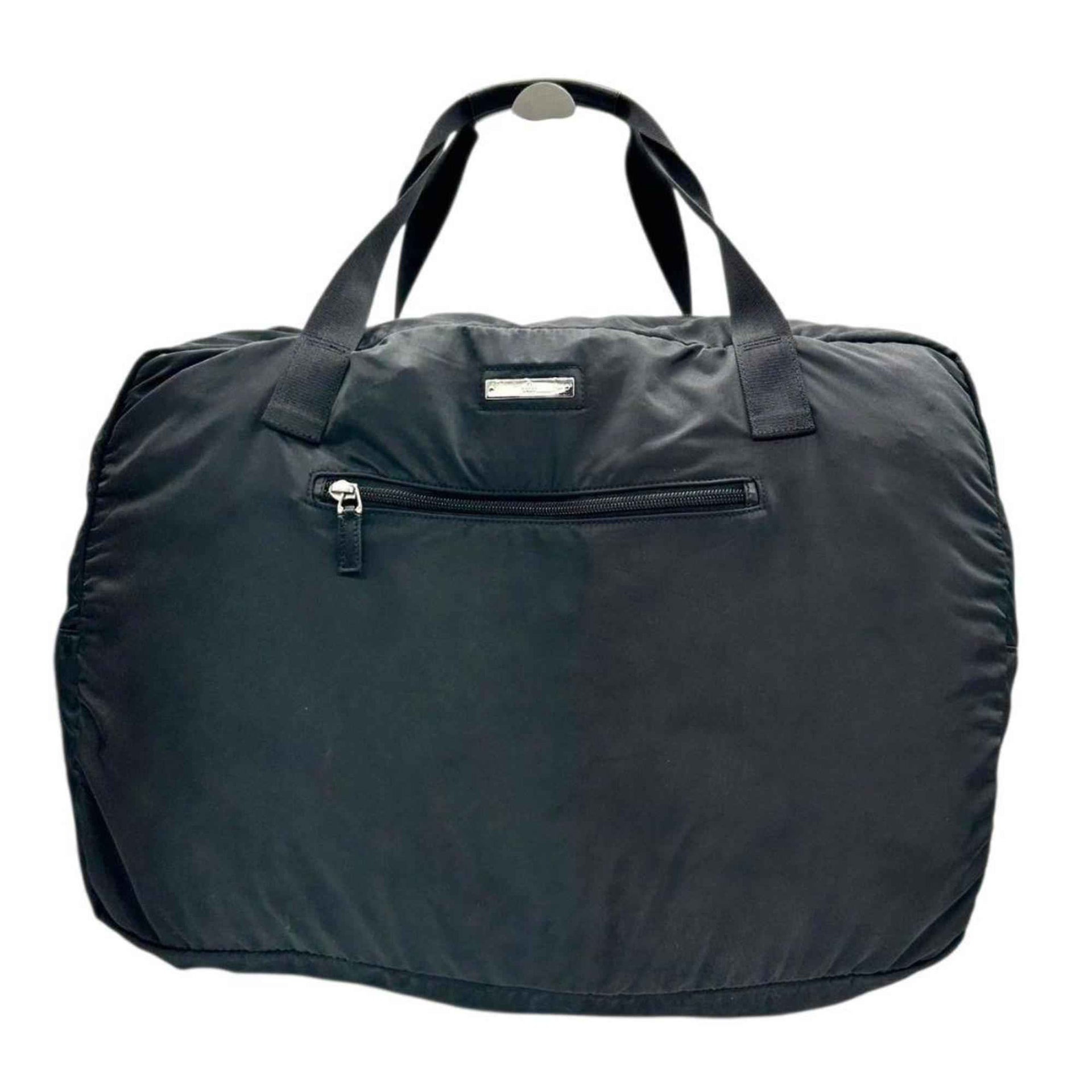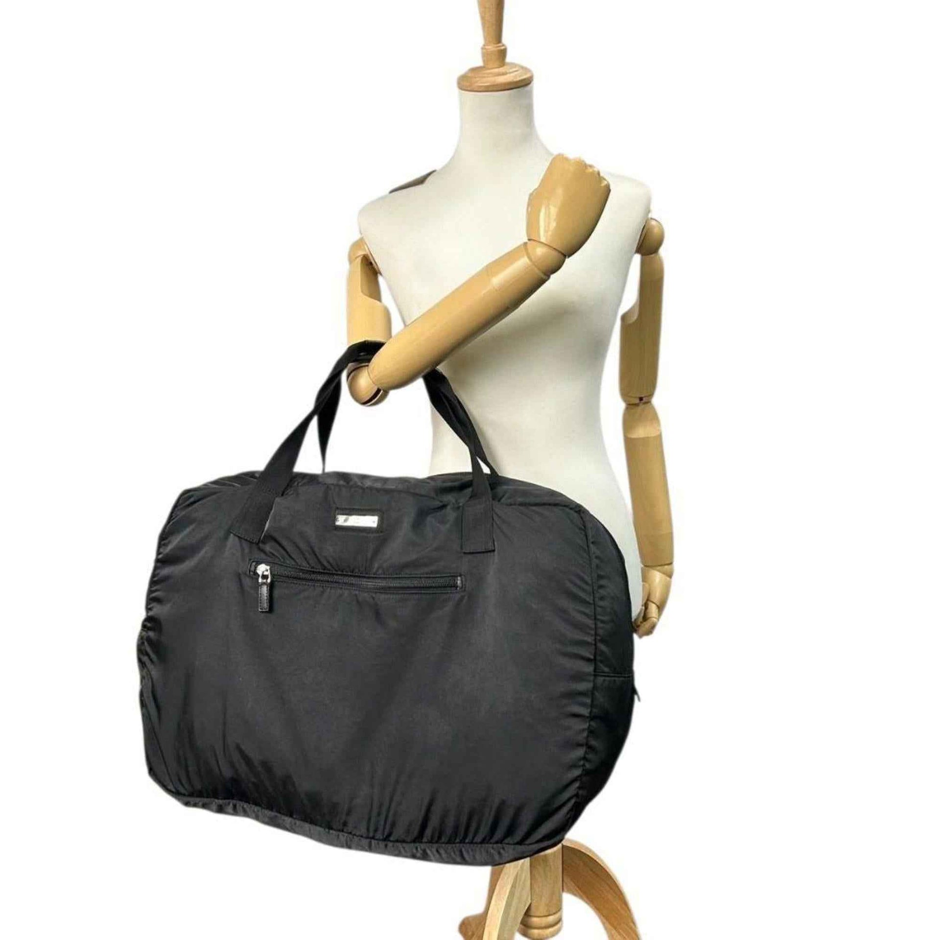 GUCCI Boston bag, black nylon tote handbag, one-shoulder logo plate, silver hardware, X2, for men and women