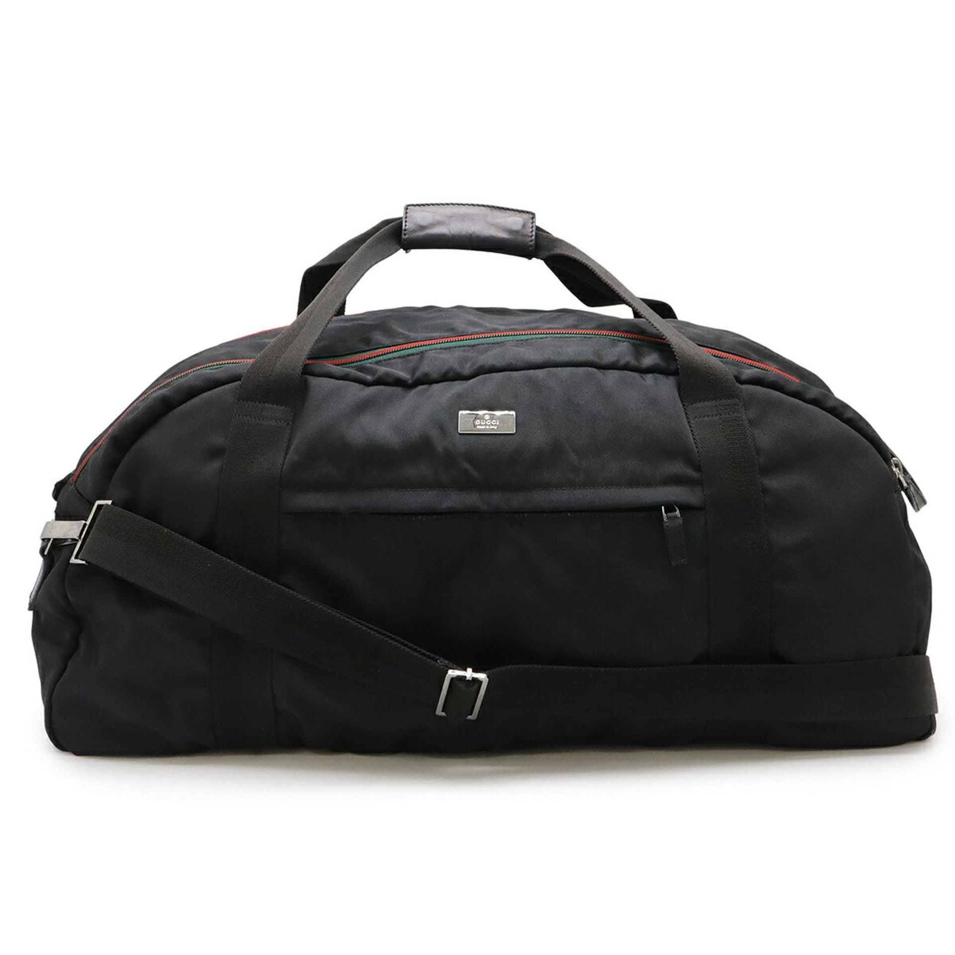 GUCCI Boston bag, travel handbag, shoulder nylon canvas, leather, black, 122325