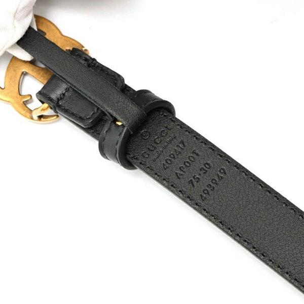 Gucci Double G Buckle Leather Belt 409417 Black #75 S-158909