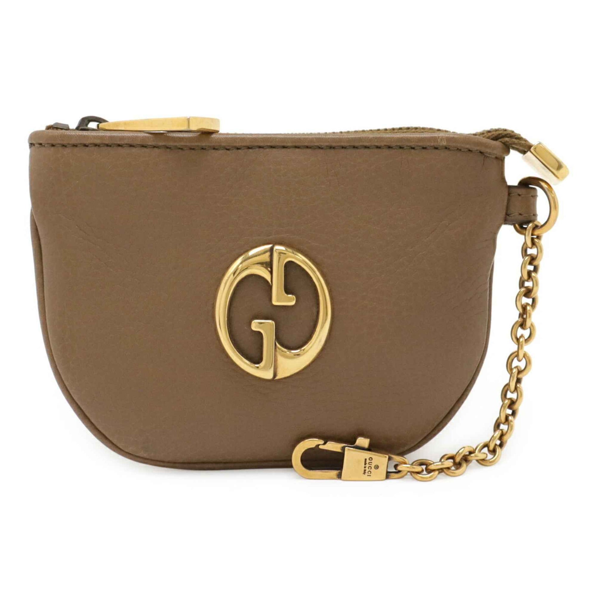 GUCCI Double G Detail Coin Case/Coin Purse in Mocha Beige Leather with Key Hook, 252042