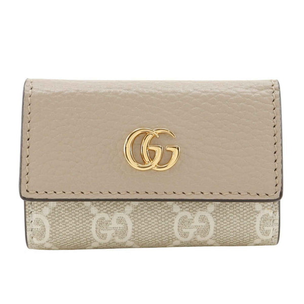 Gucci Double G Key Case, GG Supreme Canvas, Current Model, Leather Snap Button, G, Women\'s