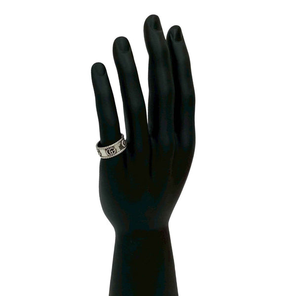 GUCCI Double G Motif Ring, Silver 925, Size 18, Men\'s, 06578