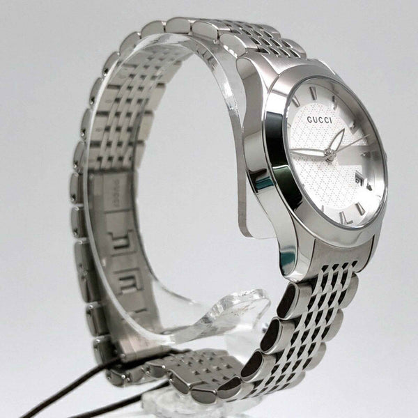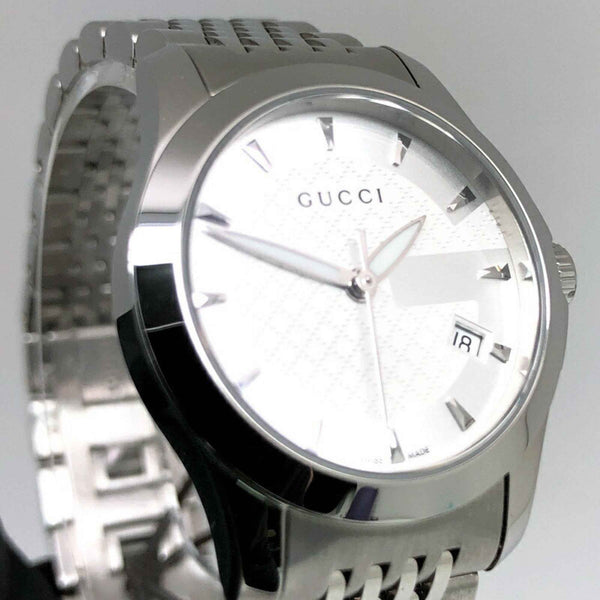 GUCCI G Timeless Quartz 126.5 Stainless Steel Battery-Operated Women\'s Watch with Date Display, 3 Hands, Silver, Mikunigaoka Store, ITT5QU506048 RM0186T