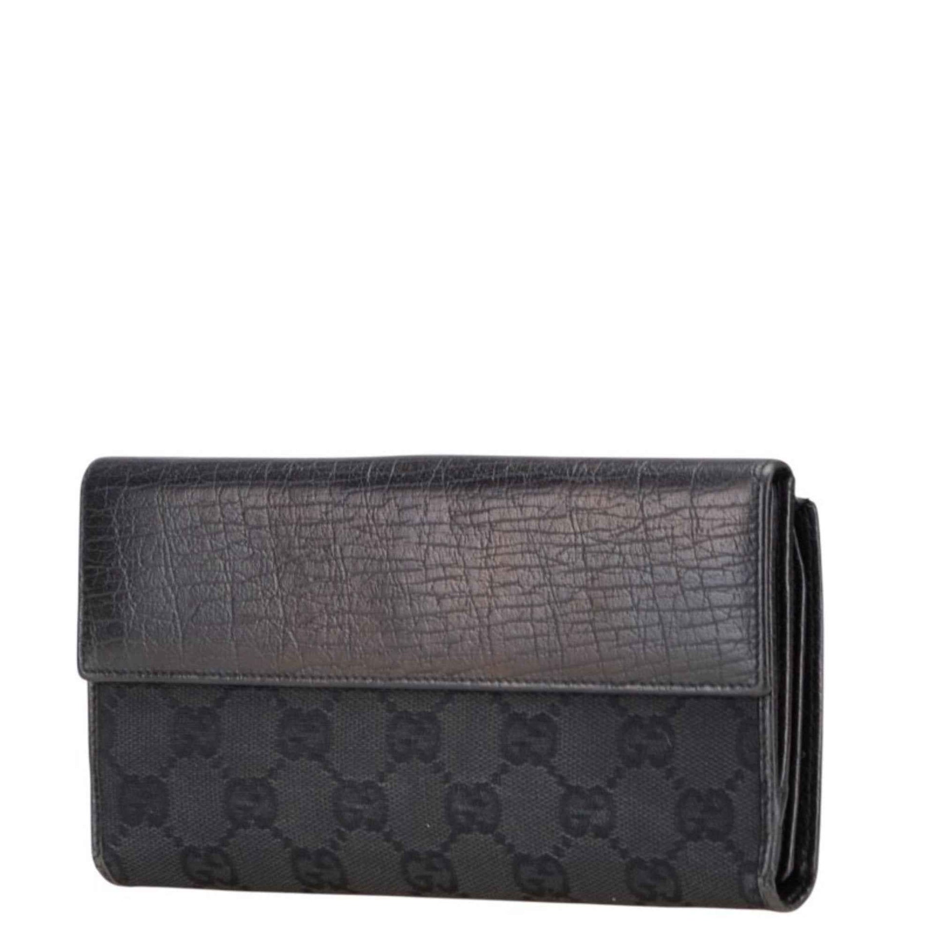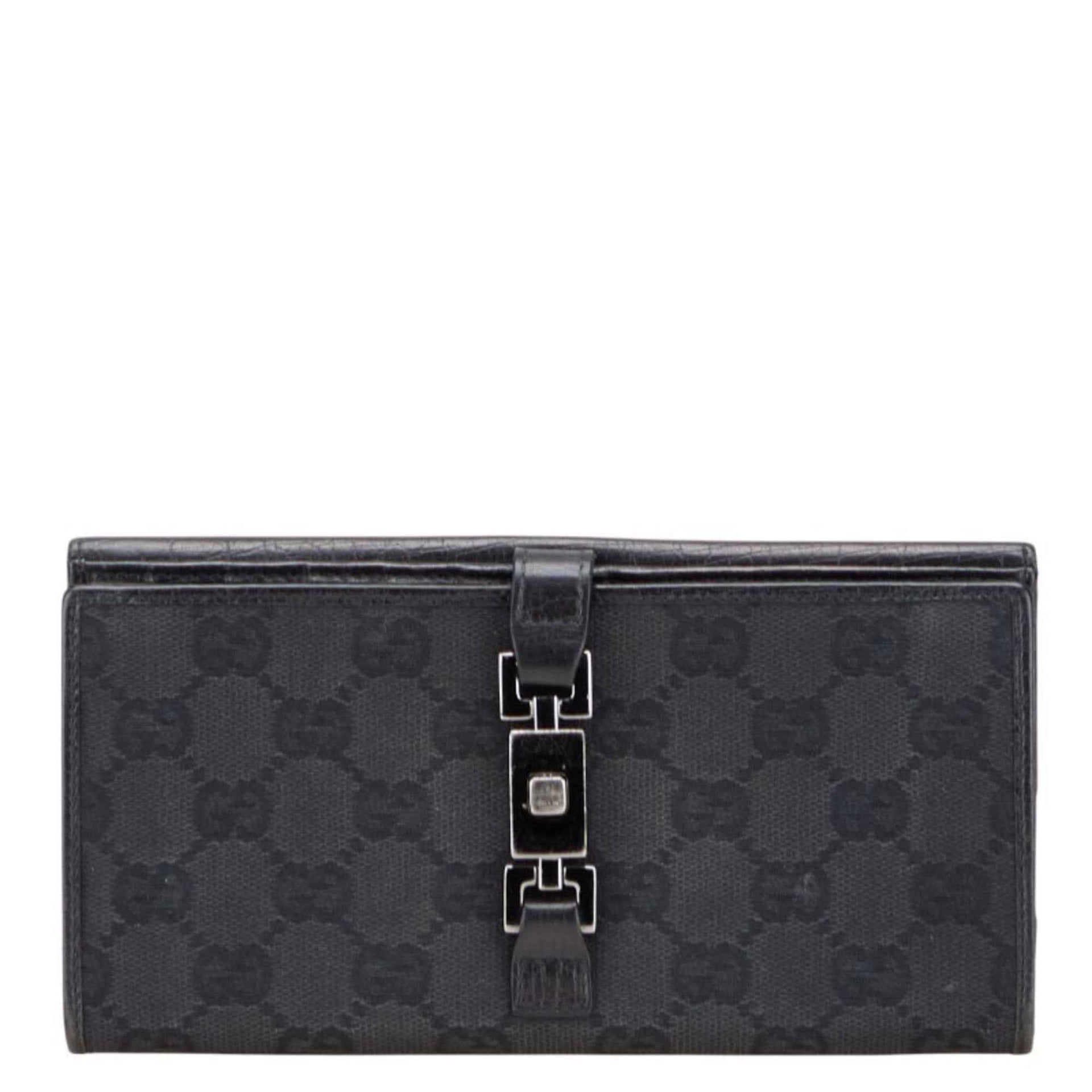 Gucci GG Canvas Jackie Long Wallet 05479 Black Leather Women\'s GUCCI