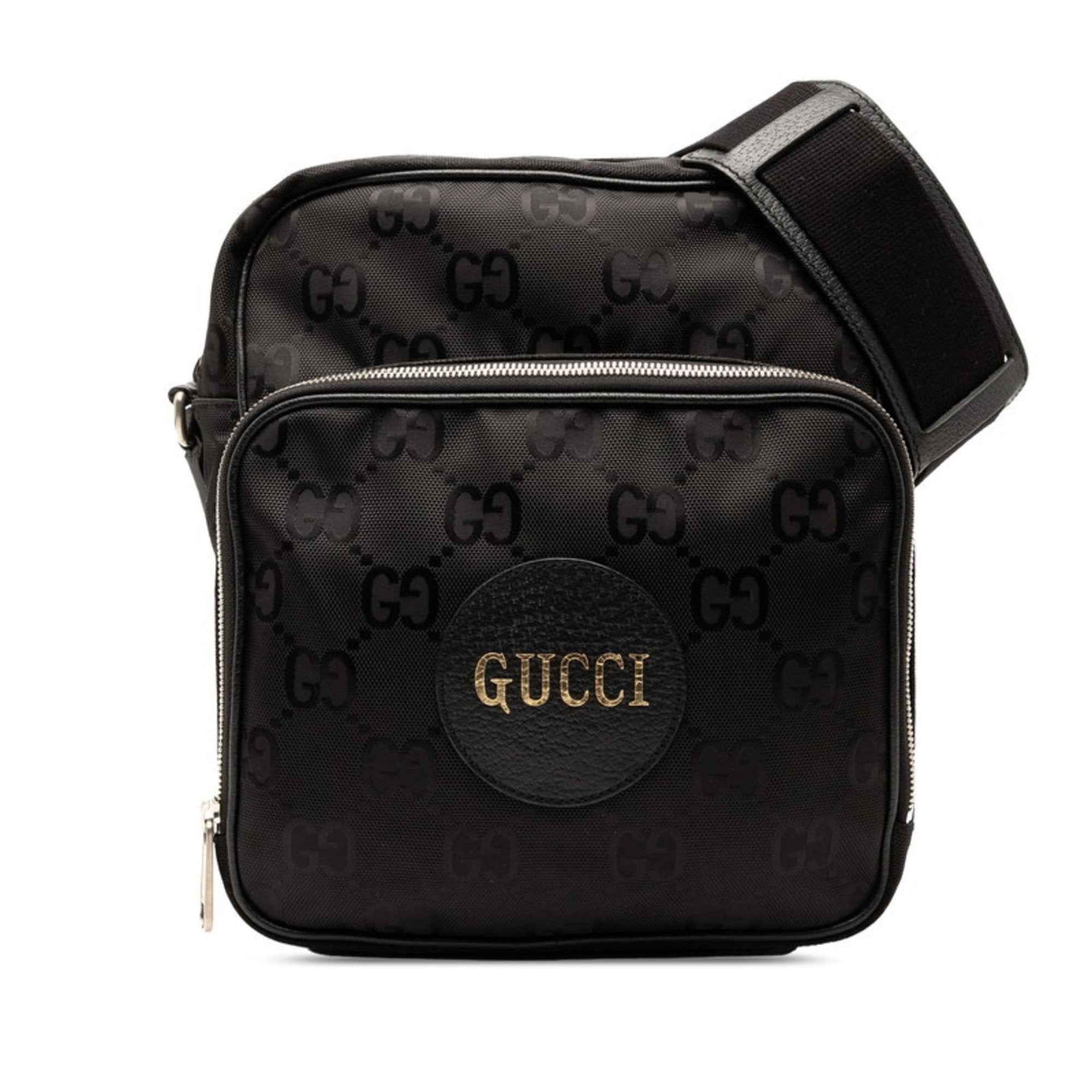 Gucci GG Nylon Off-the-Grit Shoulder/Crossbody Bag 625858 Black Leather Women\'s GUCCI