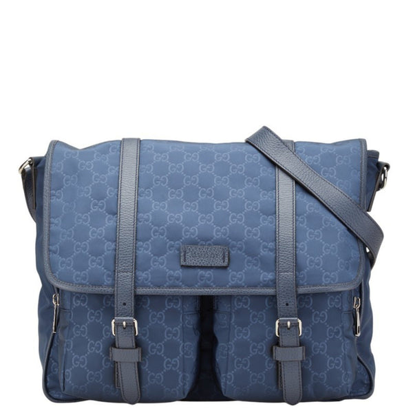 Gucci GG Nylon Shoulder Bag 387070 Navy Leather Women\'s GUCCI