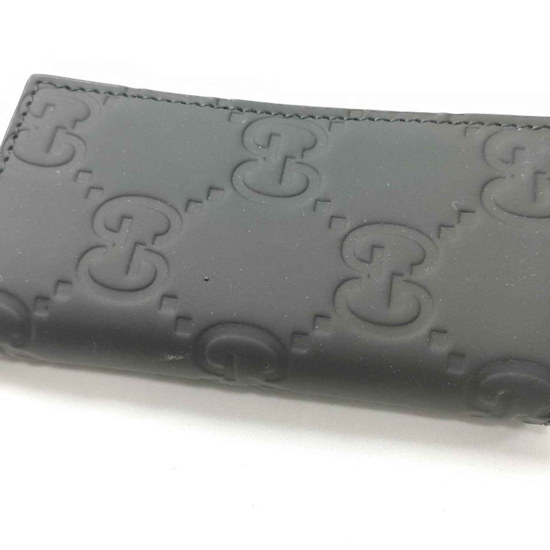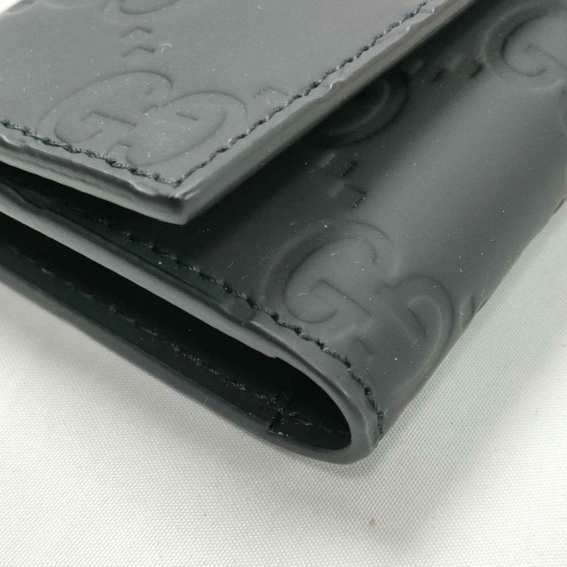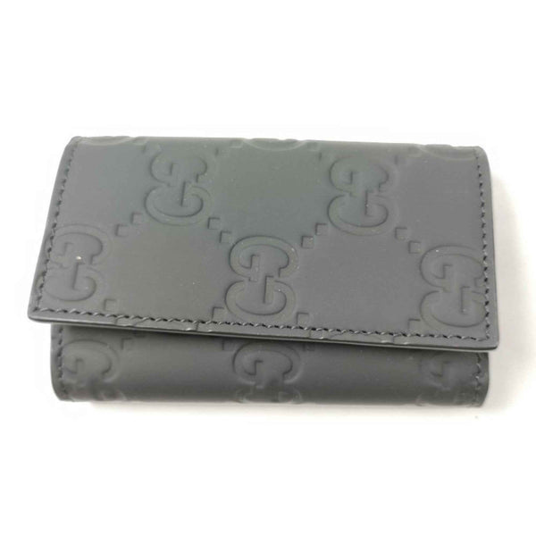 GUCCI GG Rubber Effect Key Case 771312, Black Leather, 6-Ring Ring, Gunmetal Hardware, for Men and Women