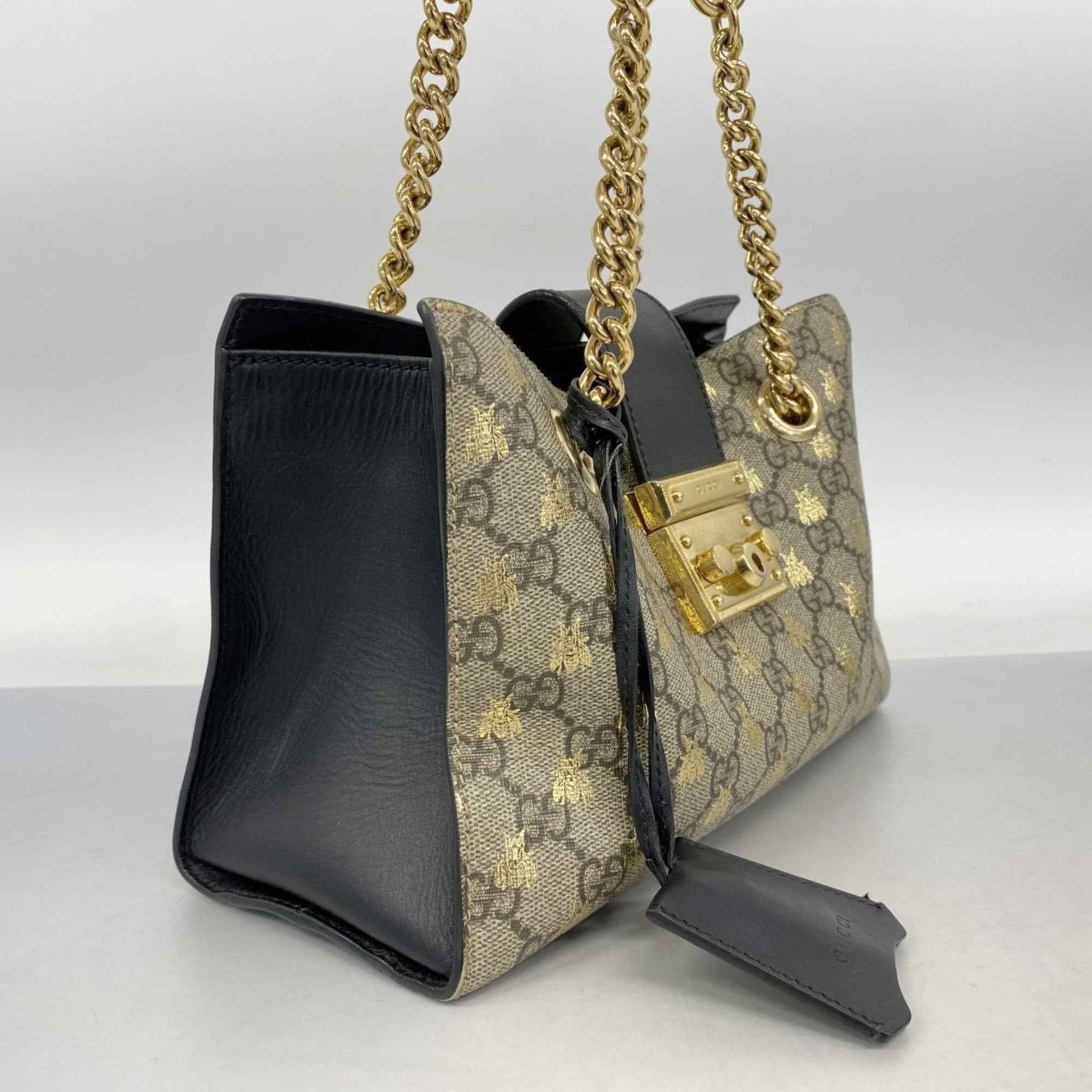 Gucci GG Supreme Bee Shoulder Bag 498156 Leather Brown Black Women\'s