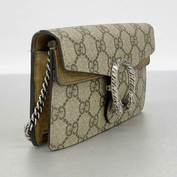 Gucci GG Supreme Dionysus Shoulder Wallet 476432 Beige Brown Women\'s
