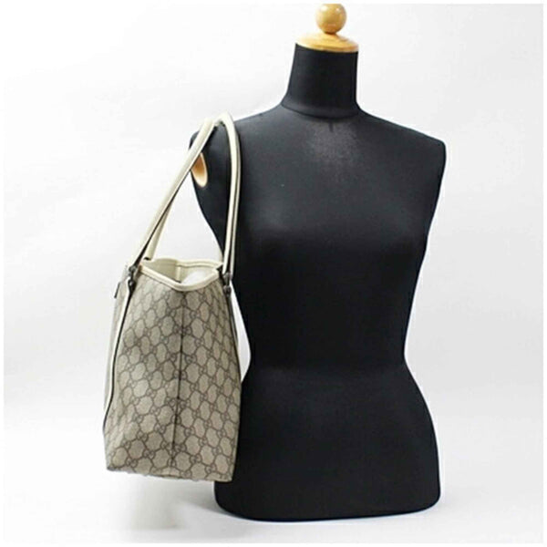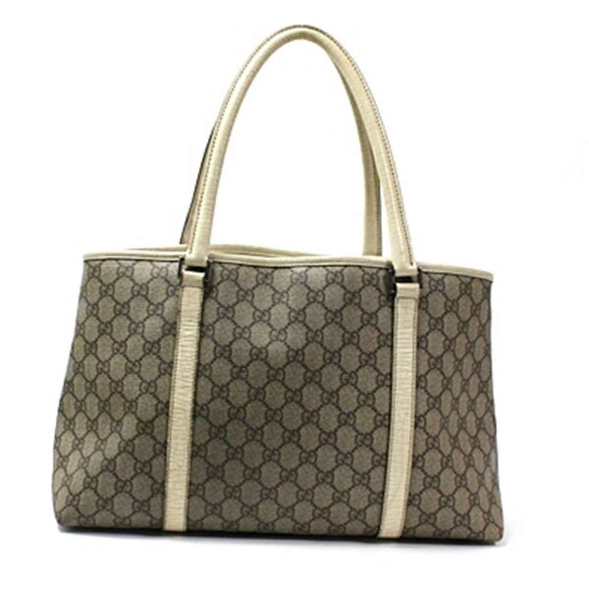 Gucci GG Supreme Tote Bag 114595 PVC and Leather Beige Brown GUCCI Women\'s