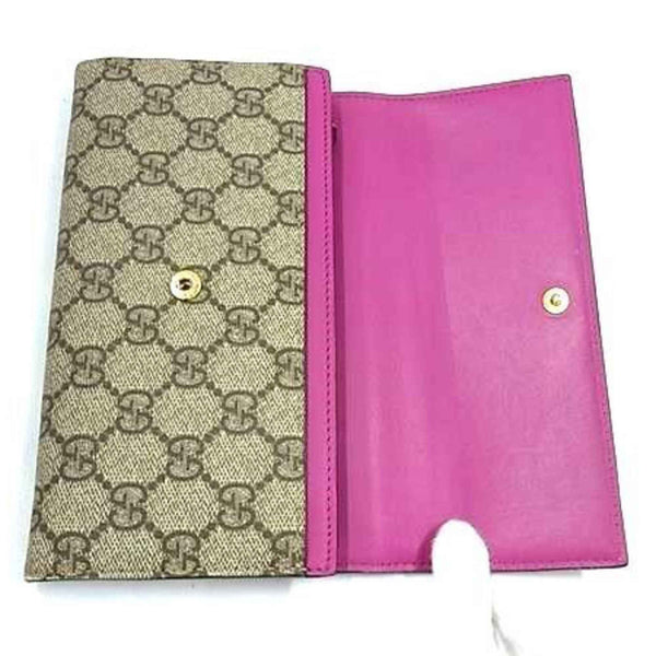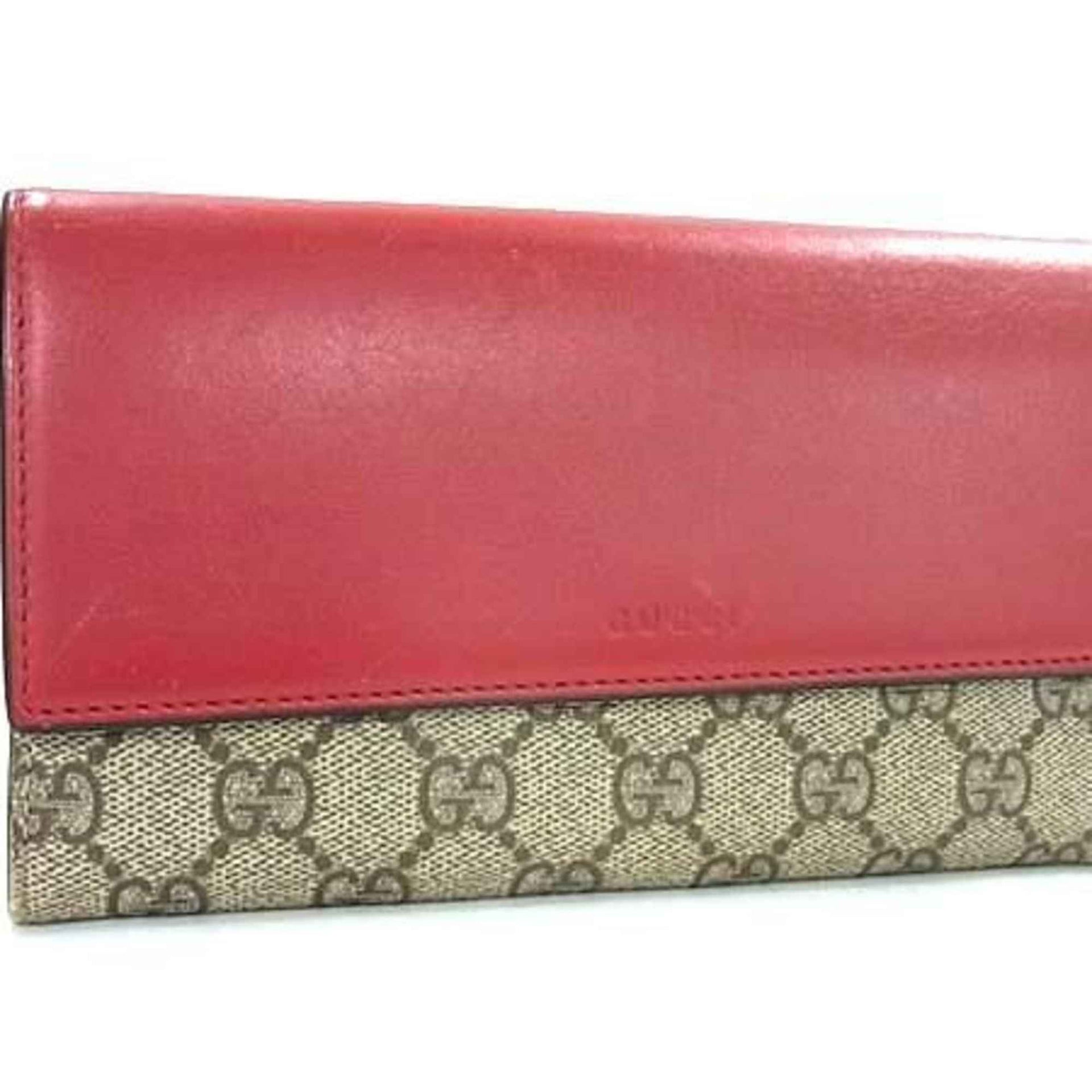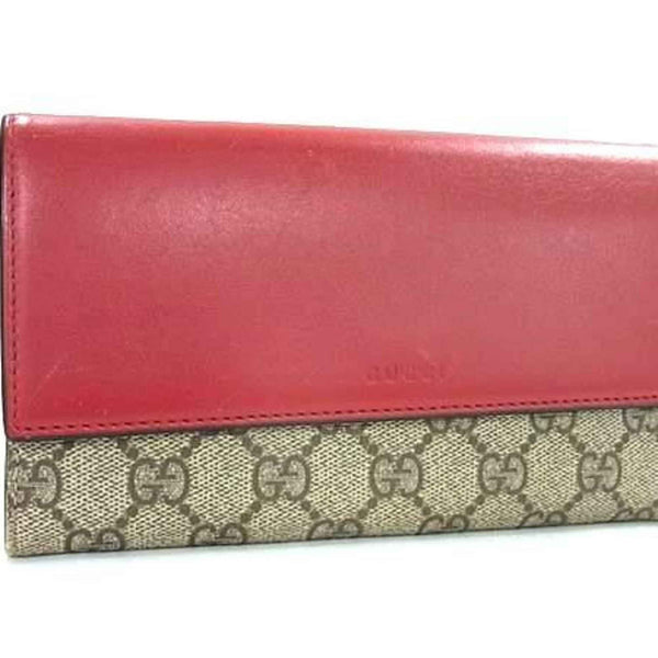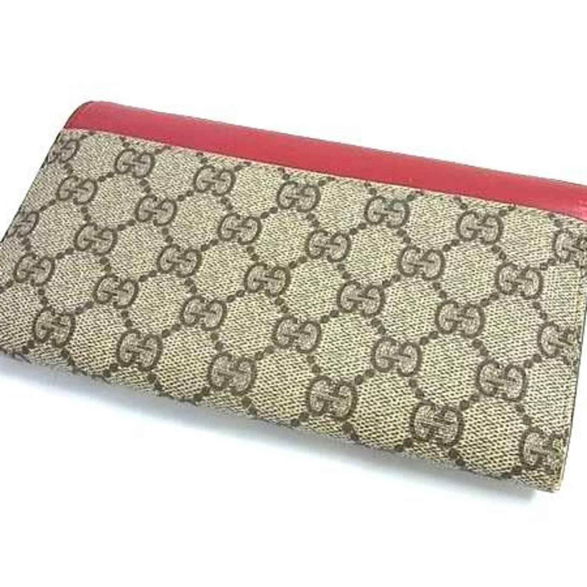 GUCCI GG Supreme Wallet 410100 Beige and Red Leather Women\'s Bifold Long
