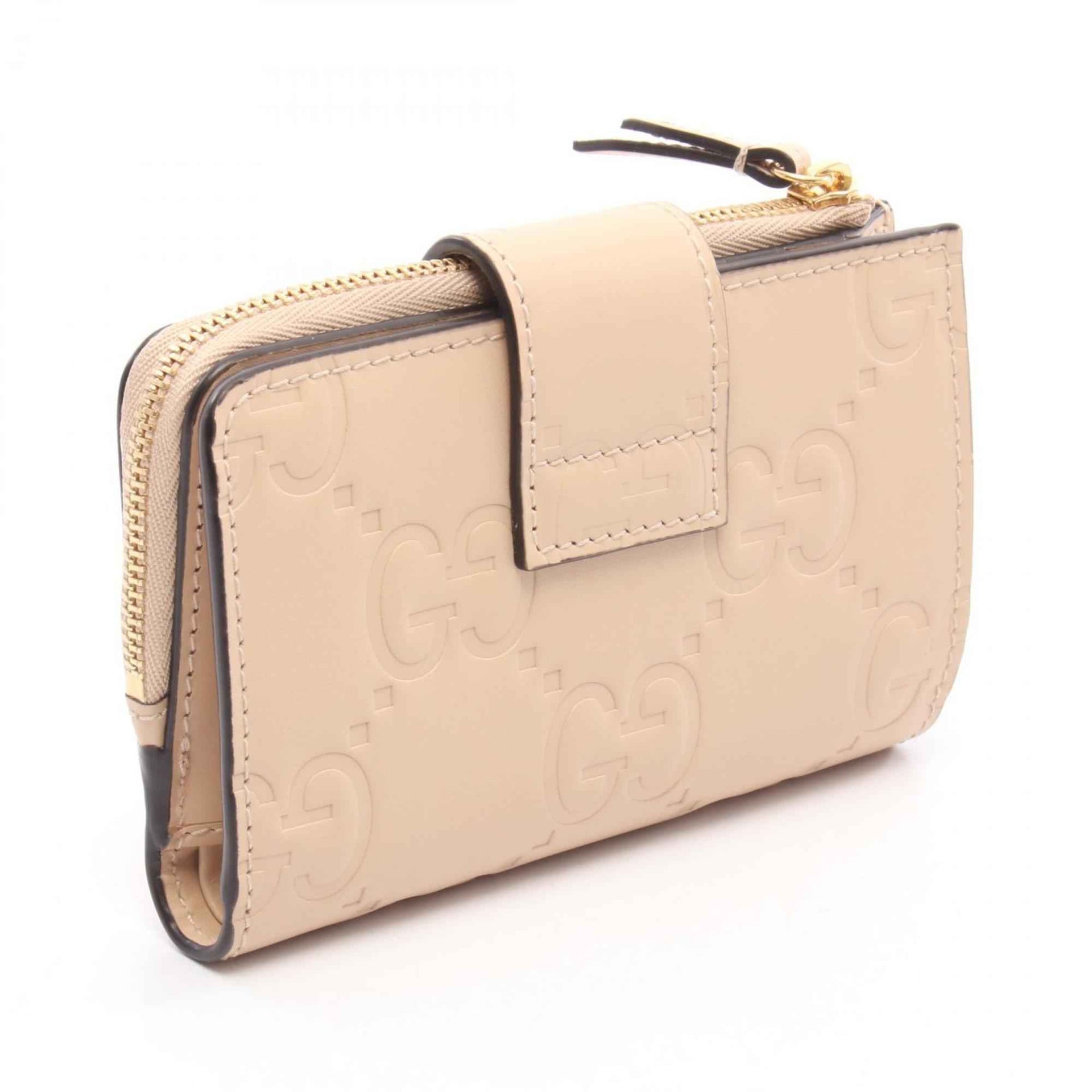 Gucci Guccissima Medium Bifold Wallet, Leather, Women\'s, Beige, 790131
