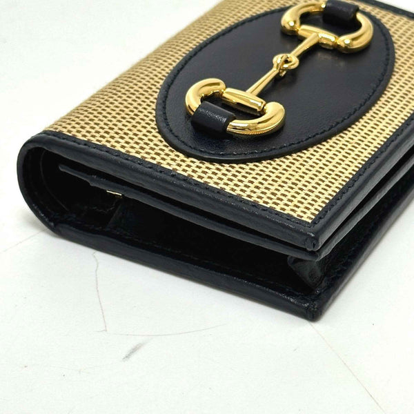 GUCCI Horsebit Compact Wallet 621887, Tri-fold Canvas/Leather, Women\'s, Beige