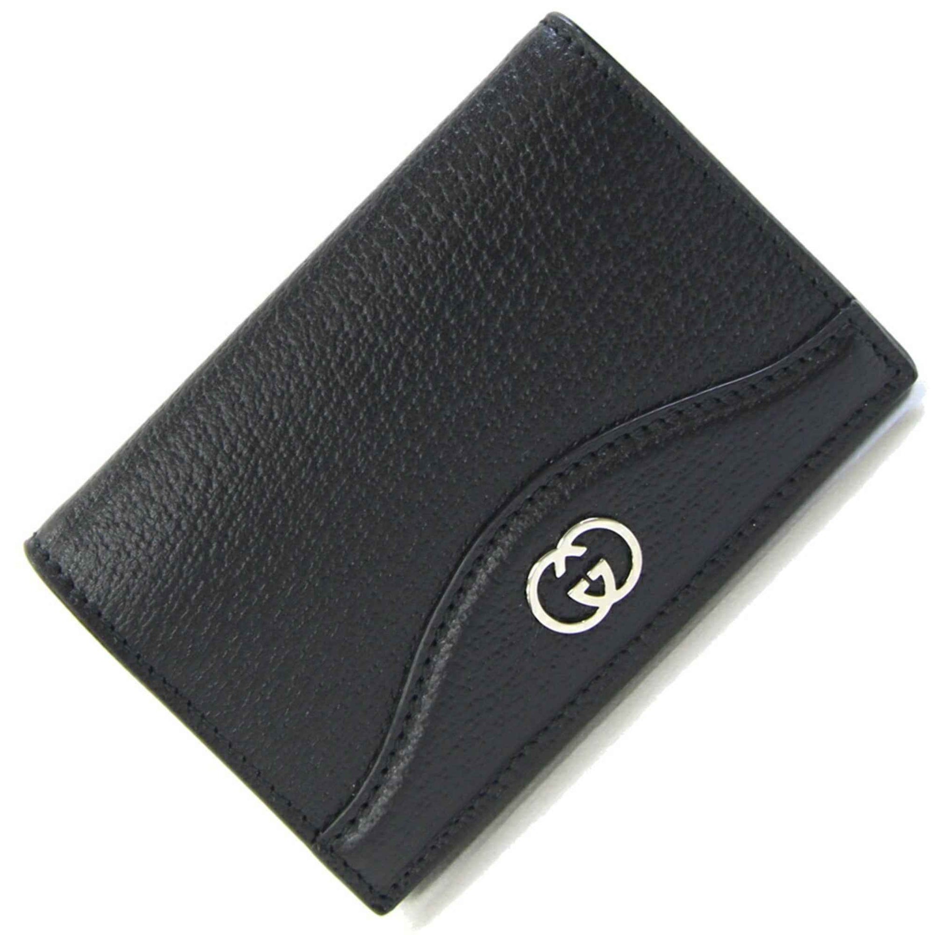 Gucci Interlocking G Business Card Case 739425 Black Leather Men\'s GUCCI