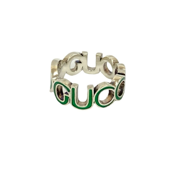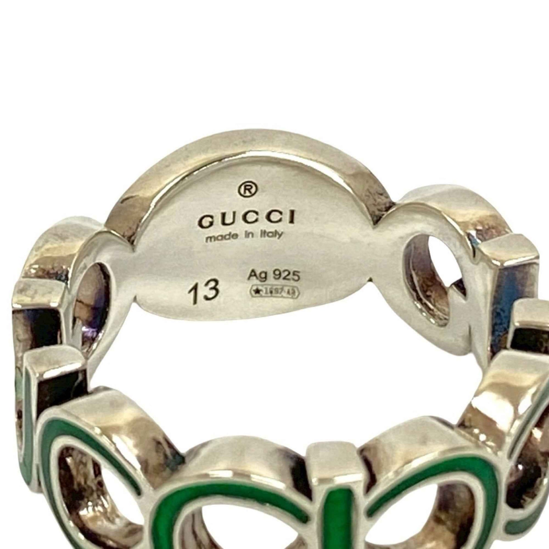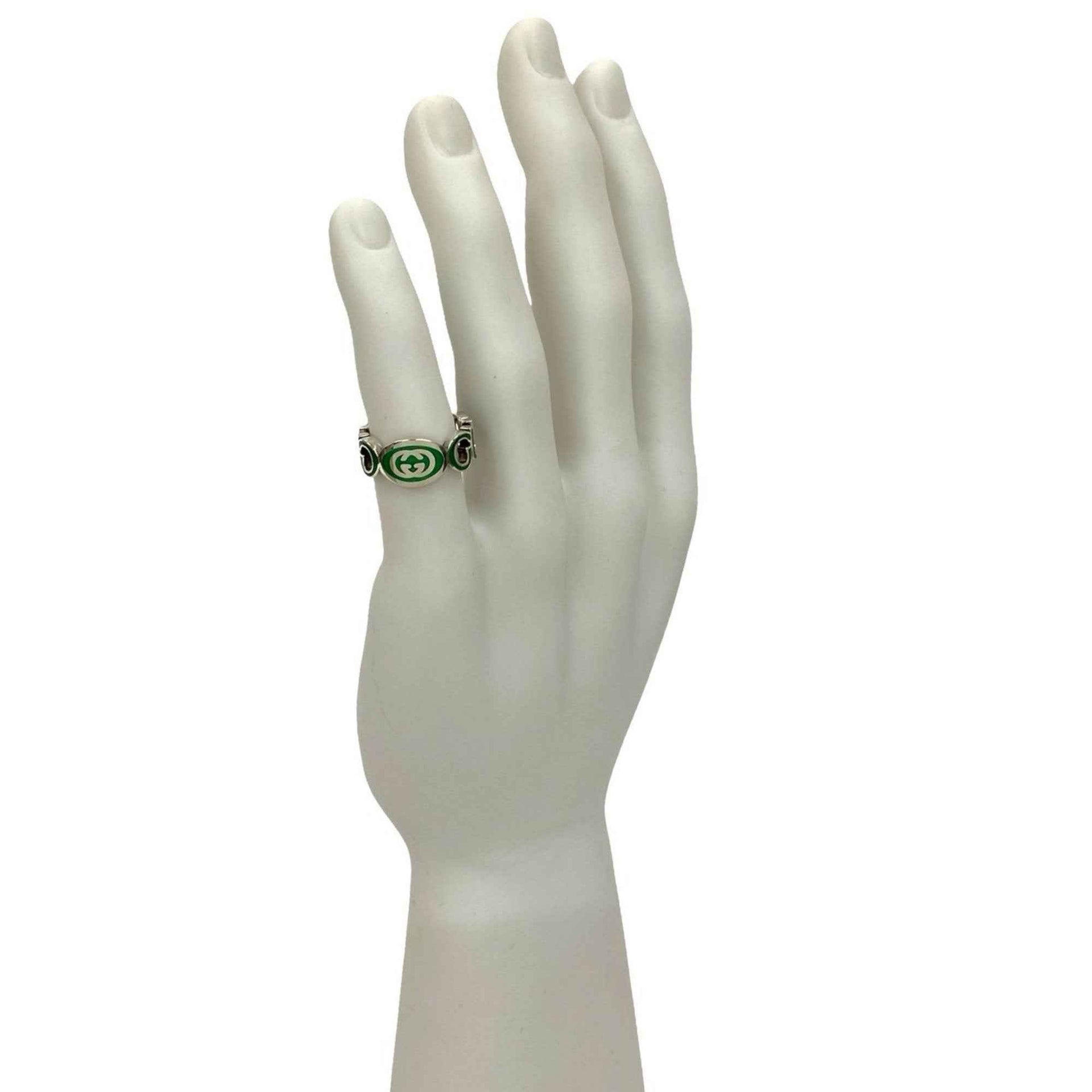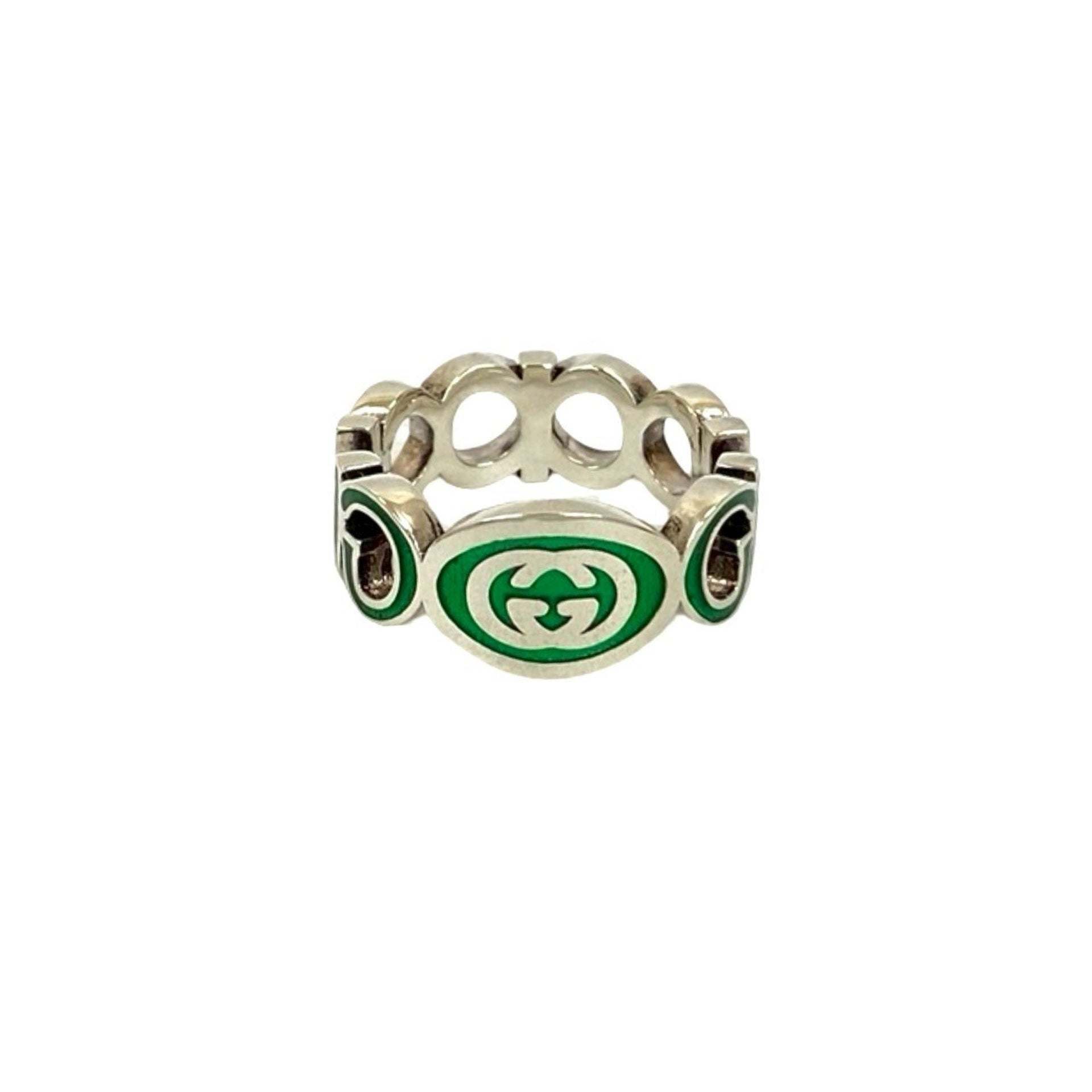 GUCCI Interlocking G Enamel Ring in Silver 925, Green, 46037