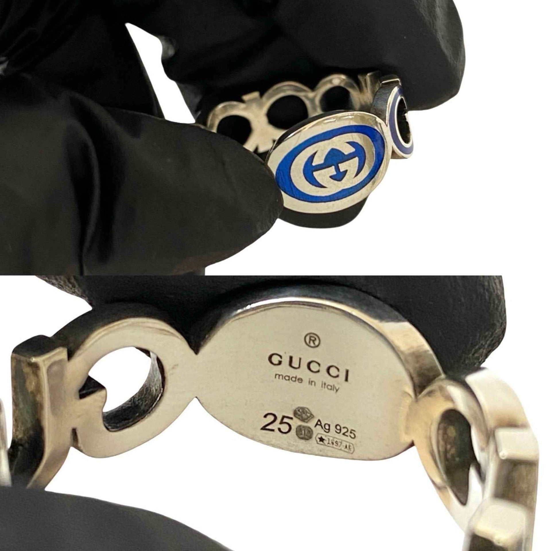 GUCCI Interlocking G Enamel Ring in Silver 925, Men\'s Silver/Blue, 56306