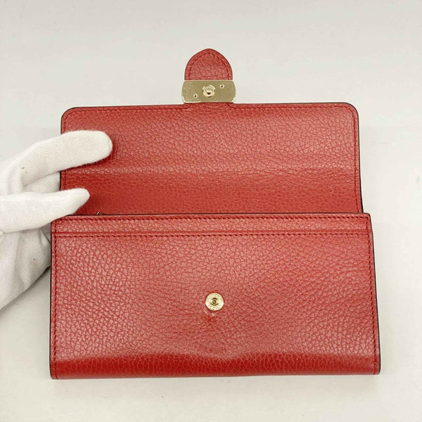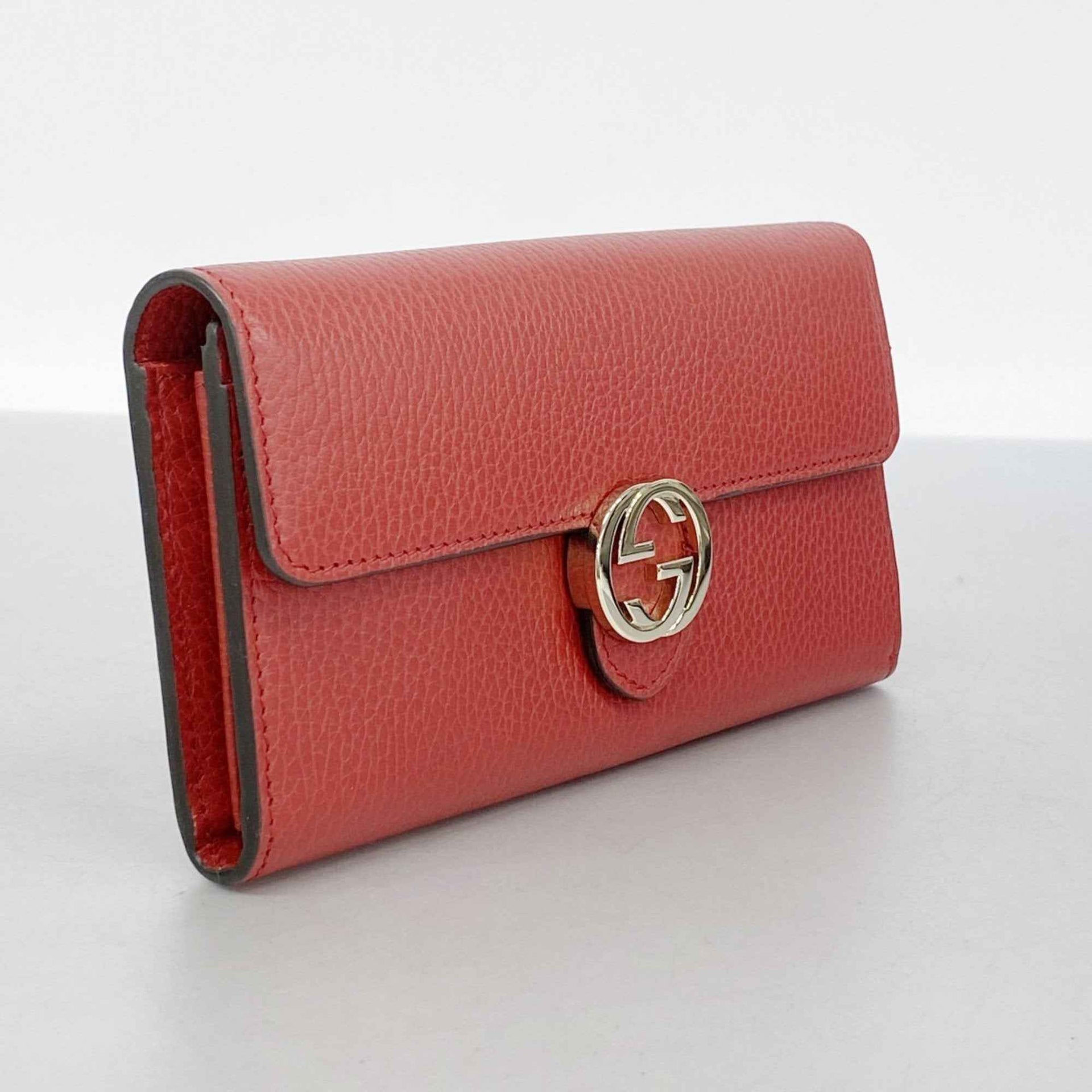 Gucci Interlocking G Long Wallet 598166 Leather Red Champagne Women\'s
