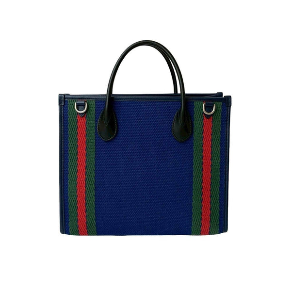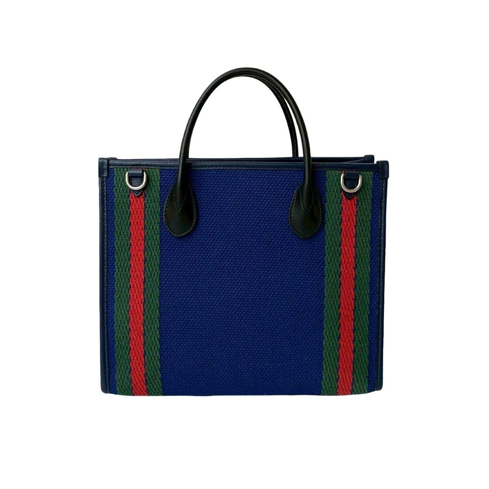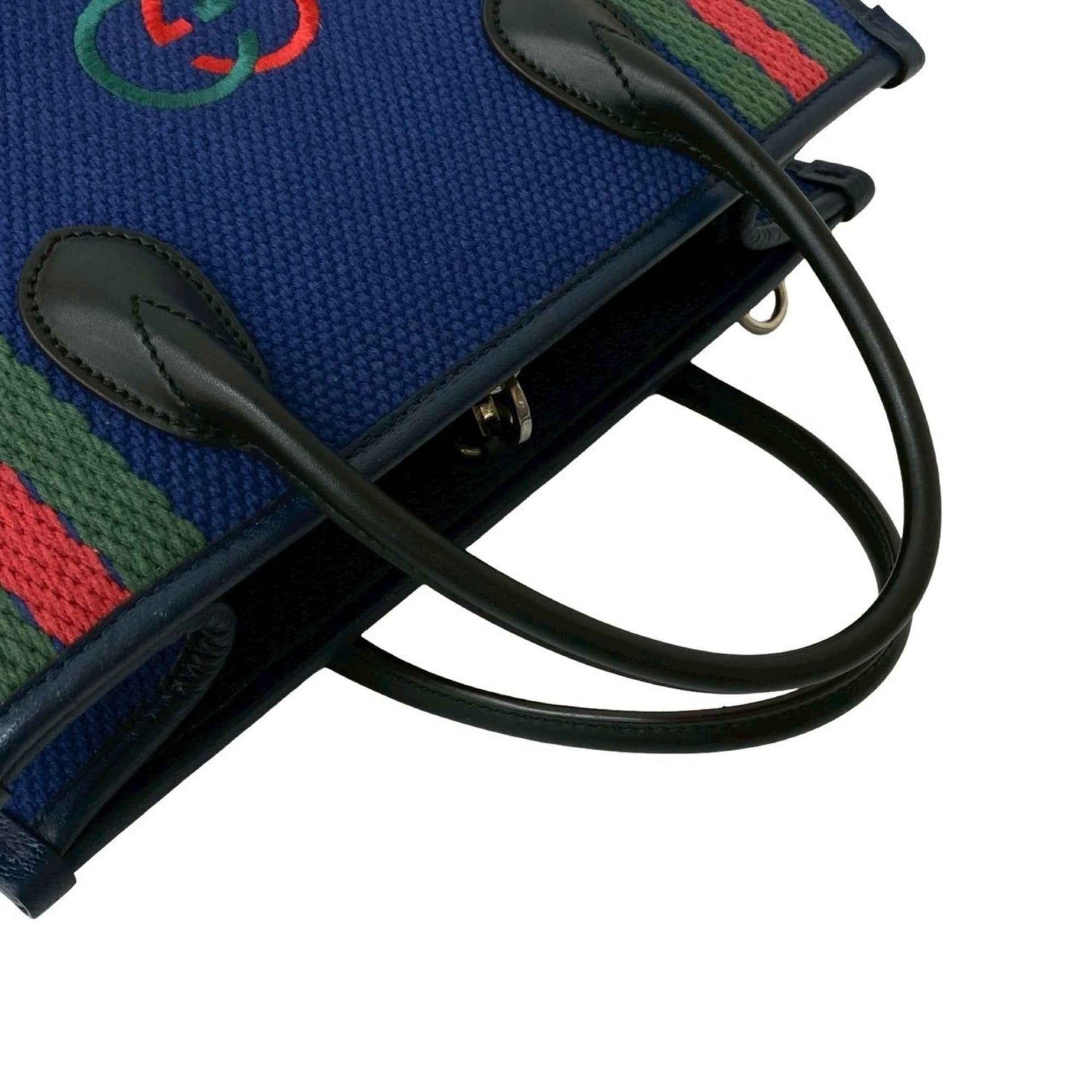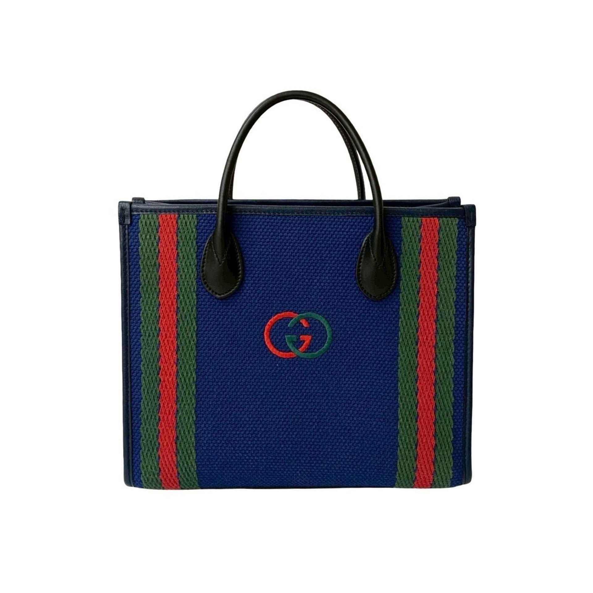 GUCCI Interlocking G Sherry Line Canvas and Leather Handbag/Tote Bag, Blue/Navy, 841-9