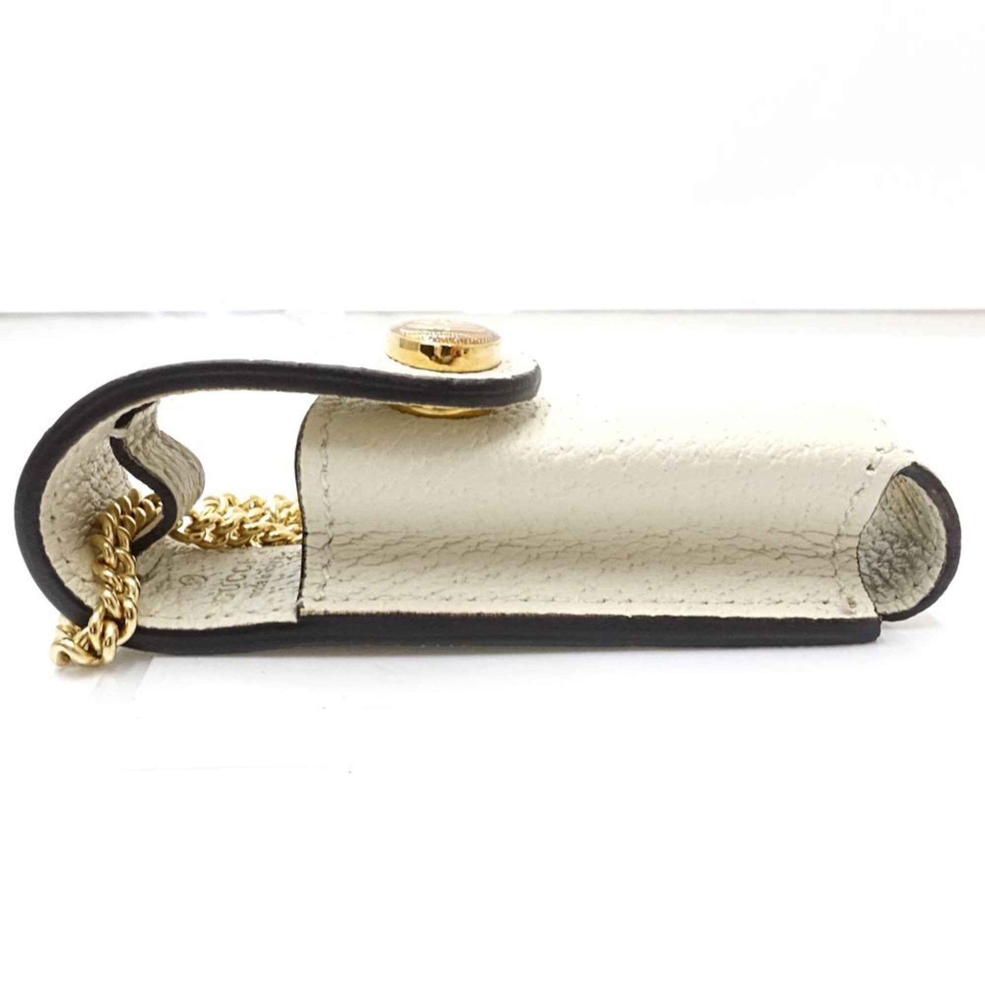 GUCCI Lipstick Case, Double G Leather, White, Women\'s, 615998, 181593