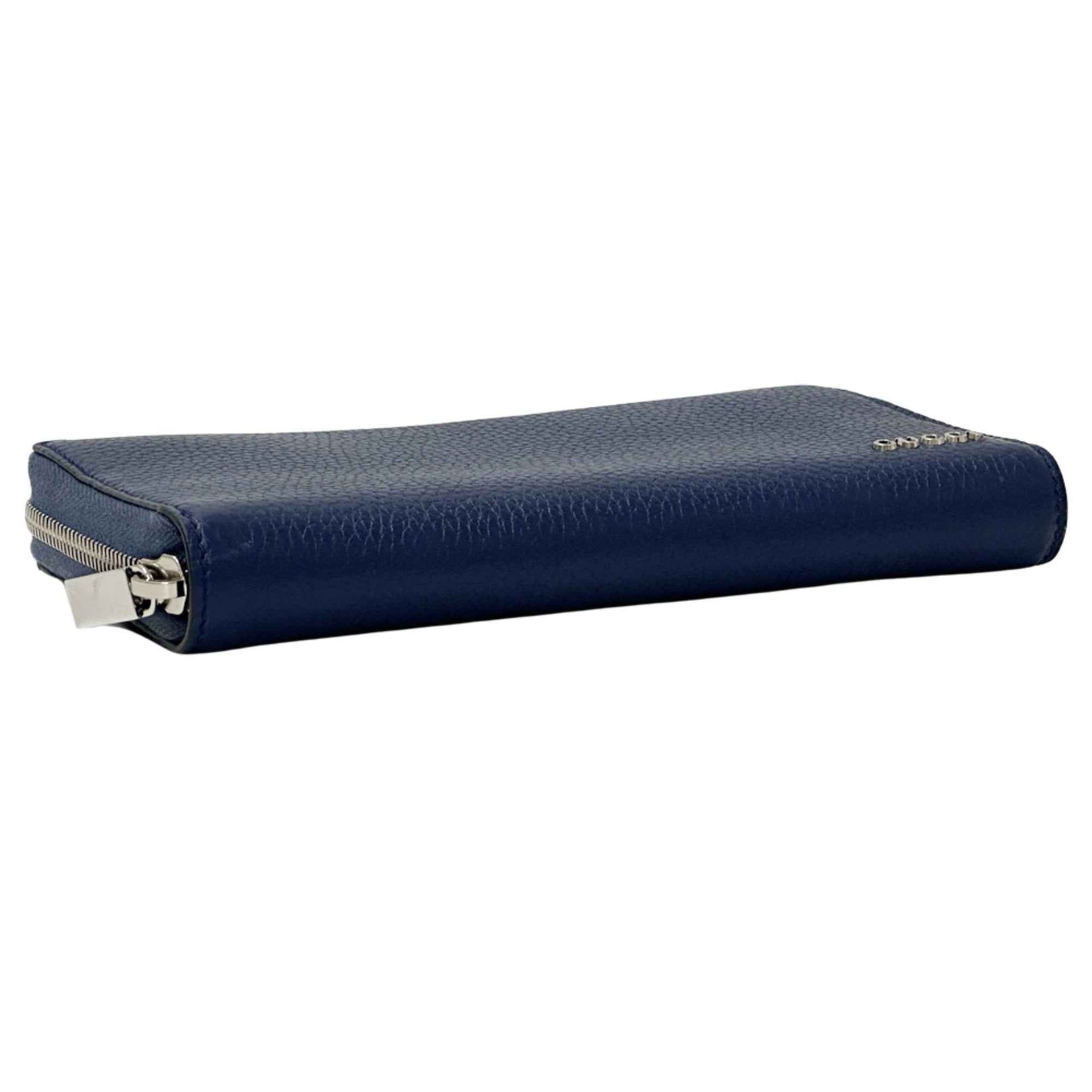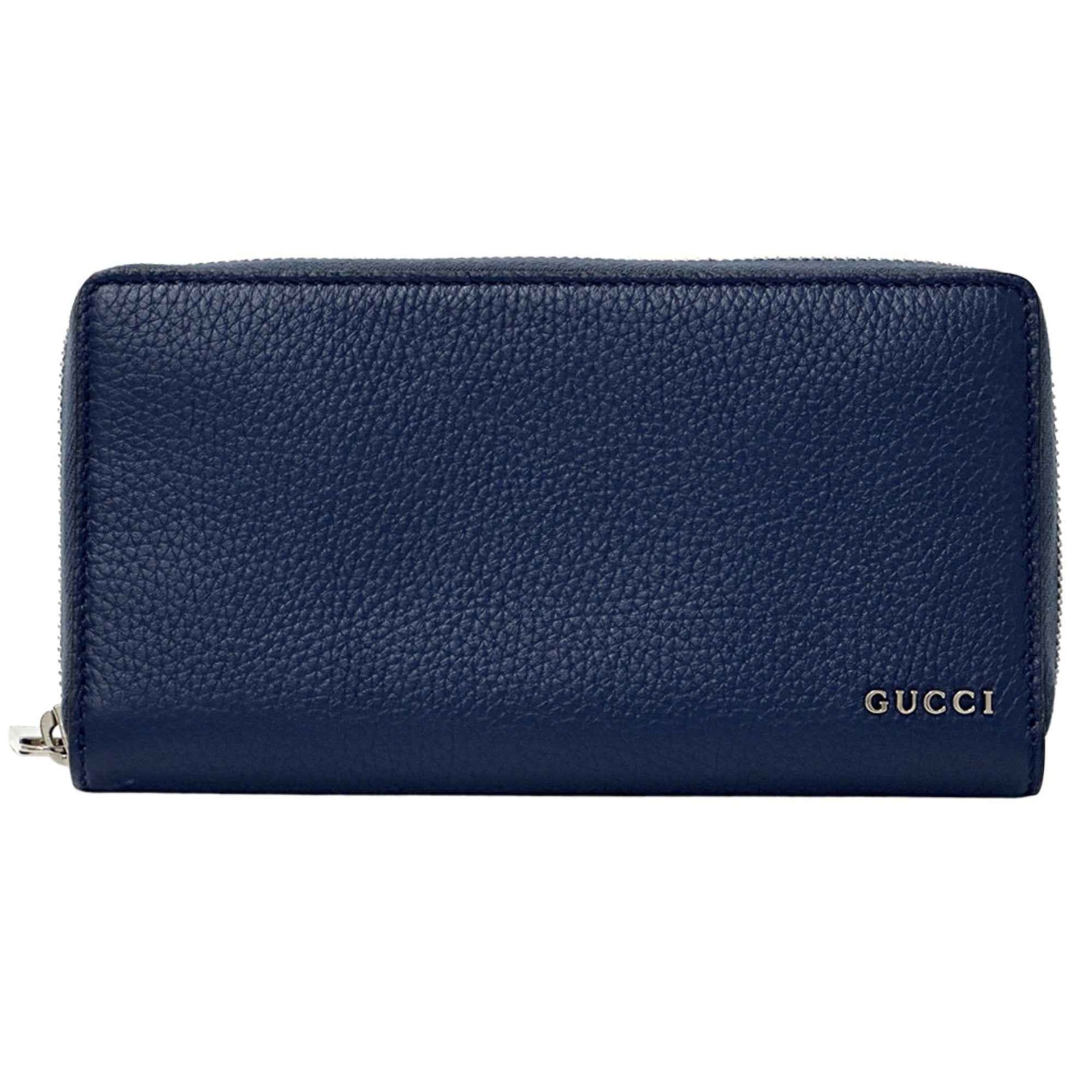 Gucci Men\'s Long Leather Wallet, Blue, 77115, with Round Zipper and Silver Hardware
