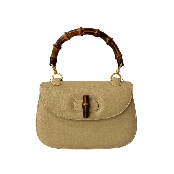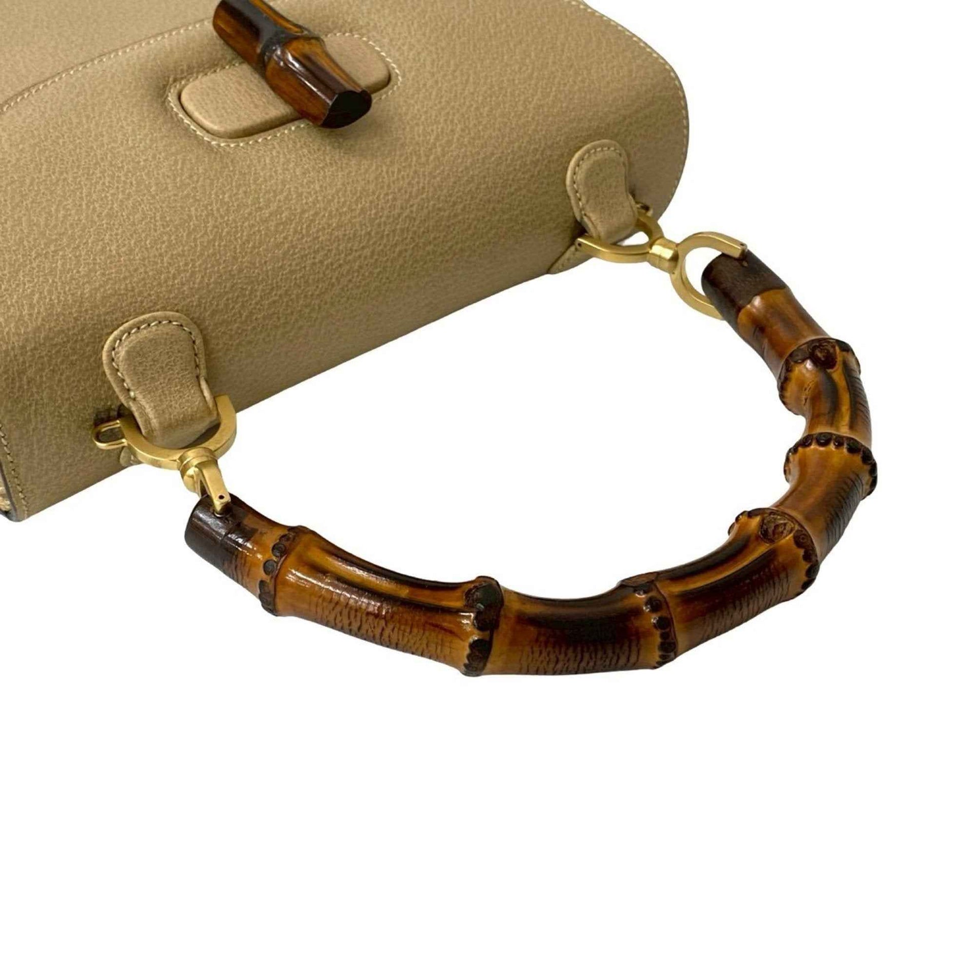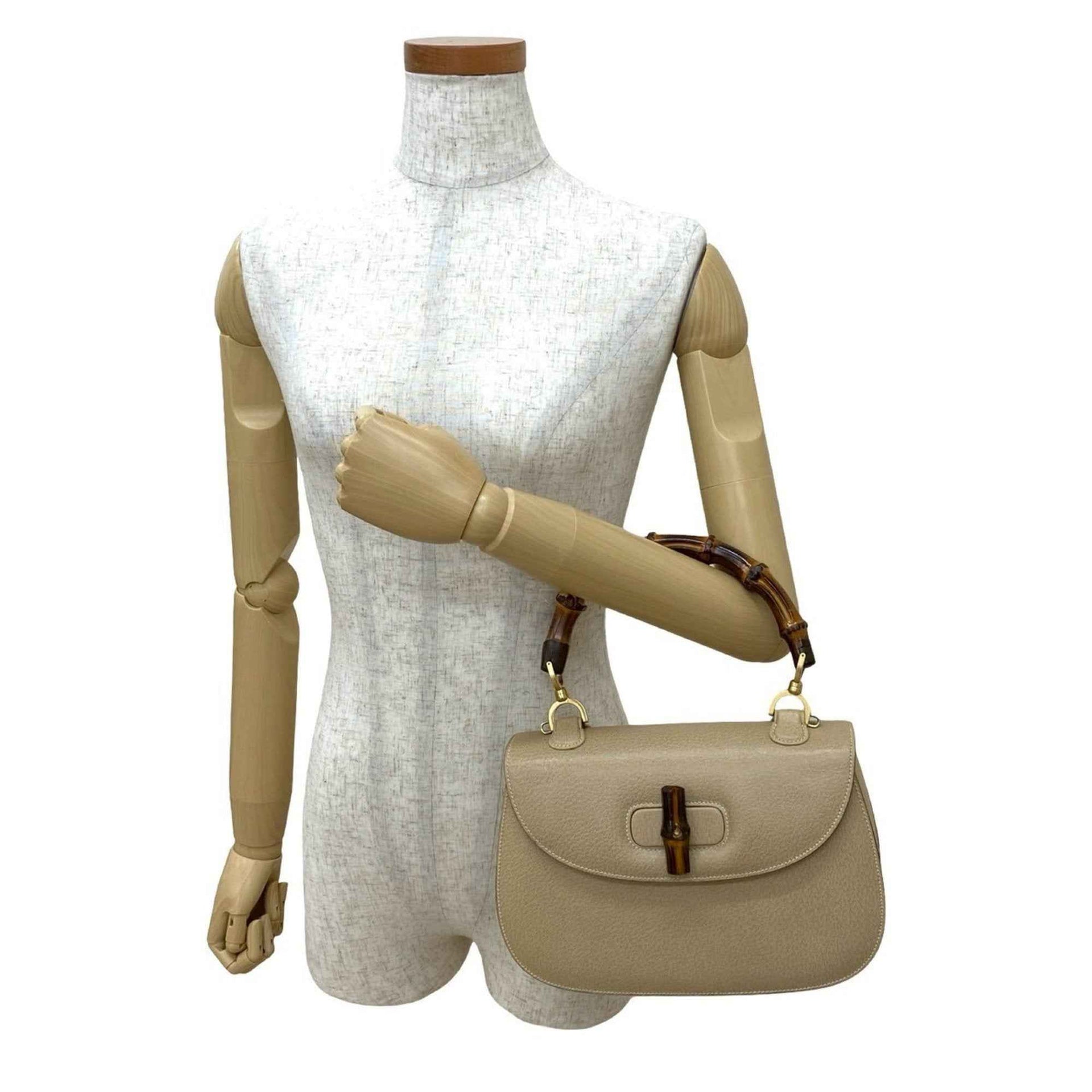 GUCCI Old Gucci Bamboo Turnlock Leather Handbag Tote Bag Beige 71650
