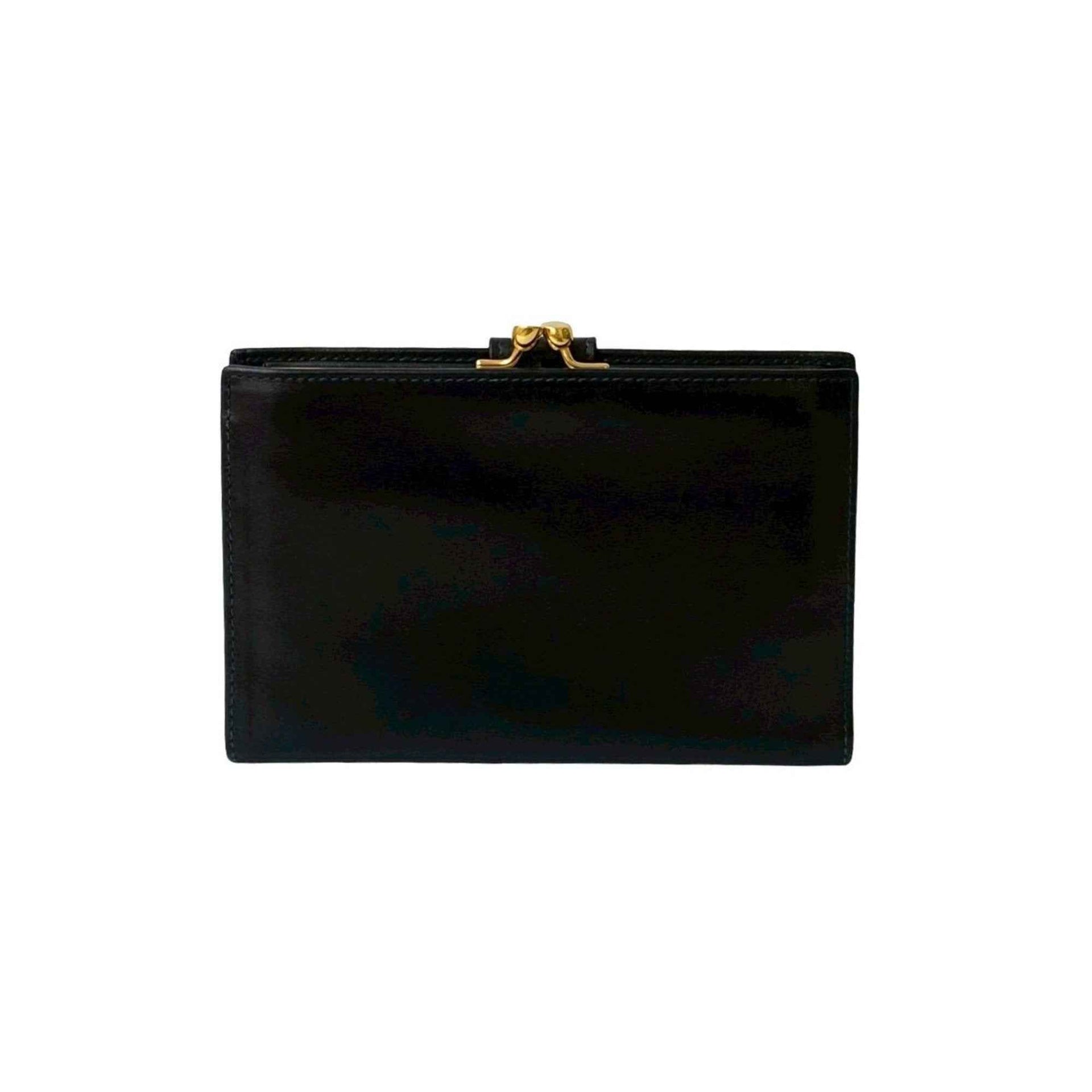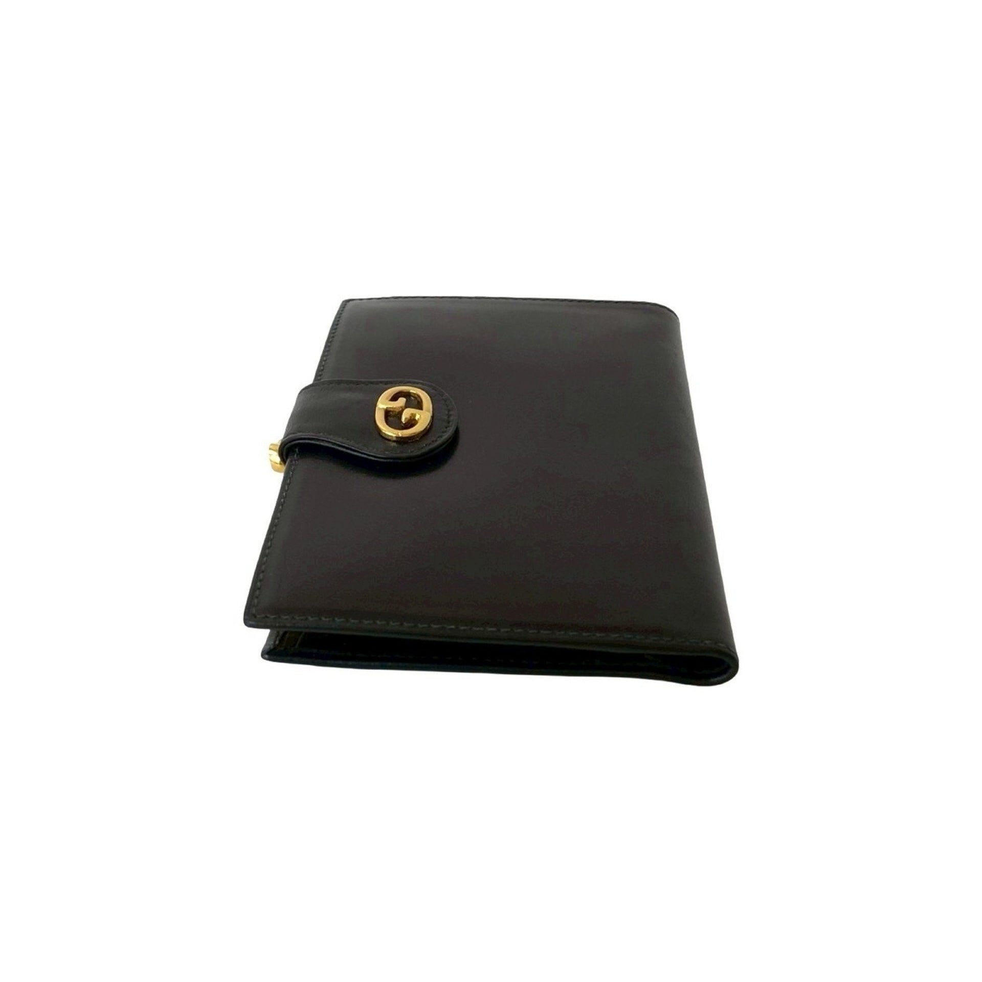GUCCI Old Gucci GG Logo Hardware Leather Genuine Bifold Wallet Clasp Closure Mini Black 292-9