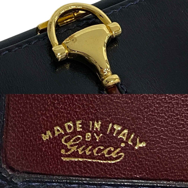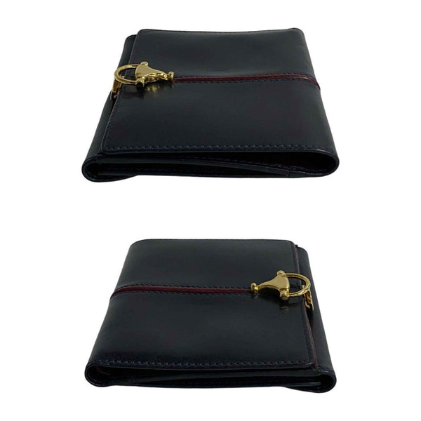 GUCCI Old Gucci Horsebit Leather Bifold Mini Wallet Navy 43922