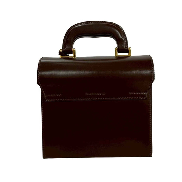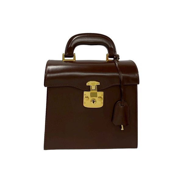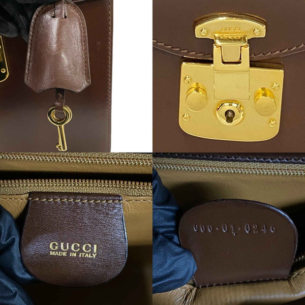 GUCCI Old Gucci Ladylock Leather Handbag/Mini Tote Bag in Brown (39696)