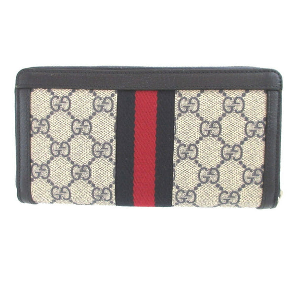 Gucci Ophidia 523154 GG Supreme Leather Beige Navy Round Long Wallet 1001GUCCI