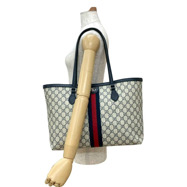 GUCCI Ophidia GG logo hardware leather tote bag, handbag, semi-shoulder navy 90978