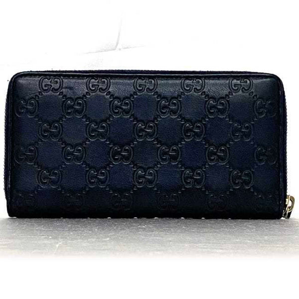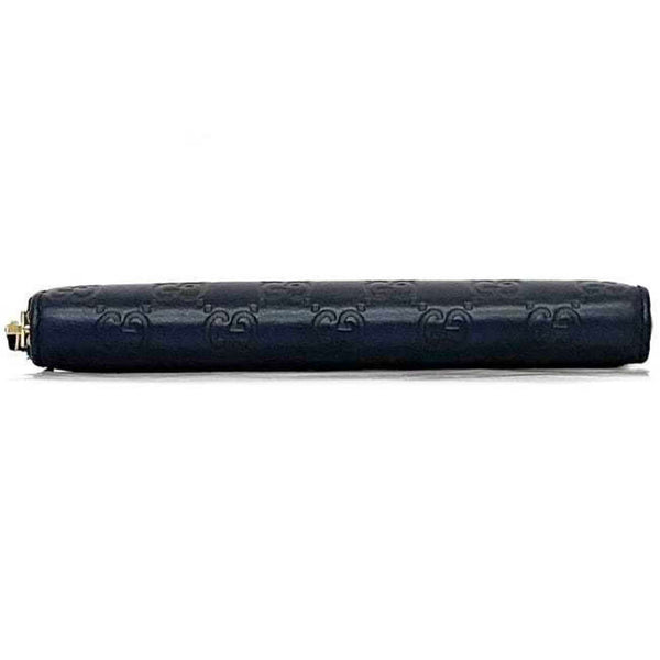 Gucci Round Long Wallet ec-23550 Navy with Shimmering Lines 307980 Leather 2067 GUCCI GG Zip-Around Embossing for Men and Women