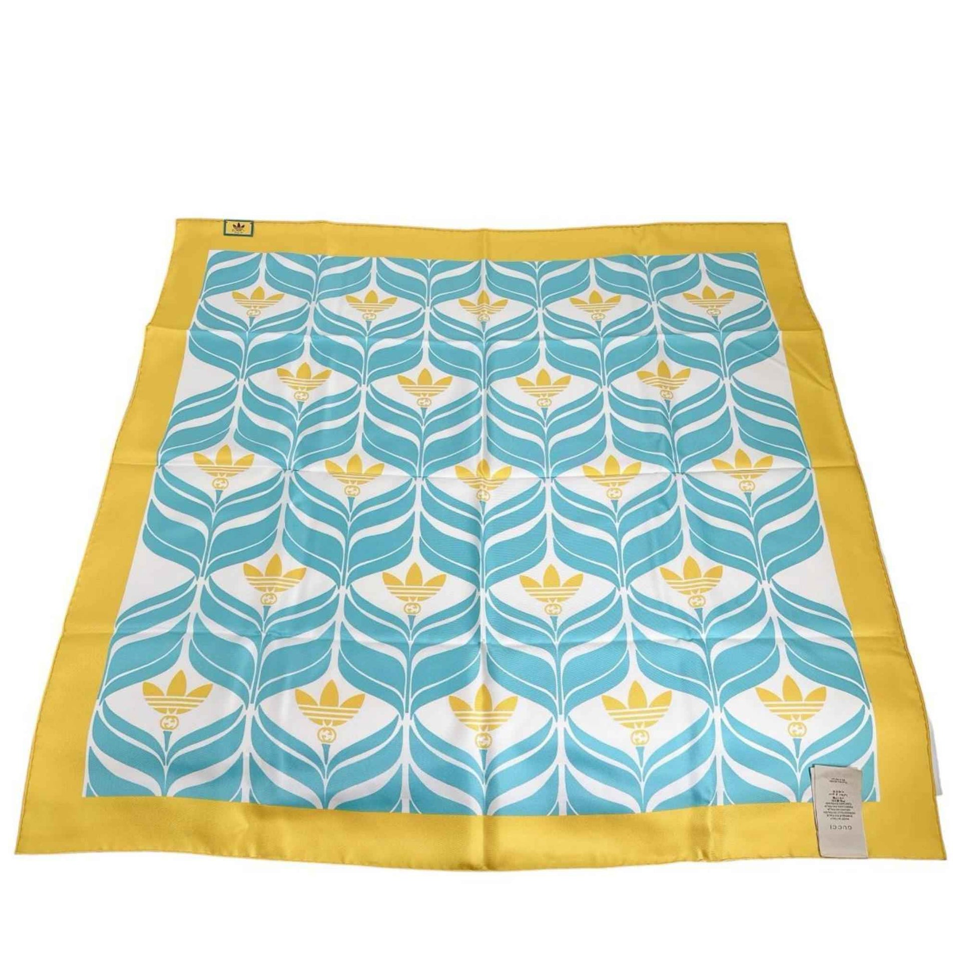 Gucci Scarf, 100% Silk, Adidas Collaboration, 716092, Yellow x Blue