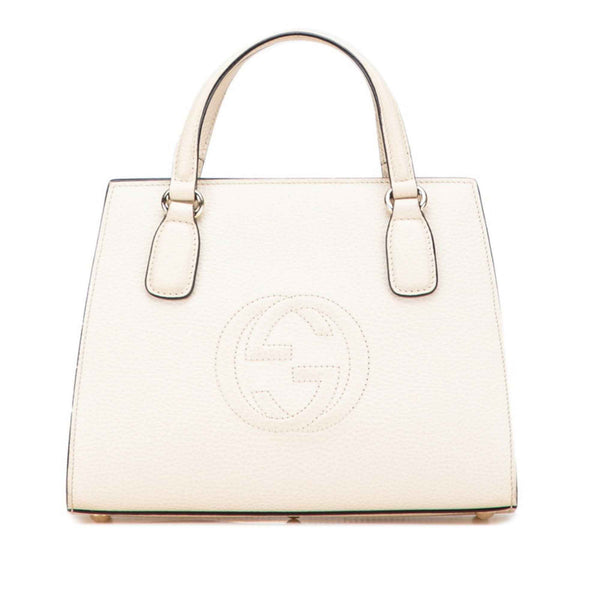 Gucci Soho Interlocking G Handbag 607722 White Ivory Leather Women\'s GUCCI