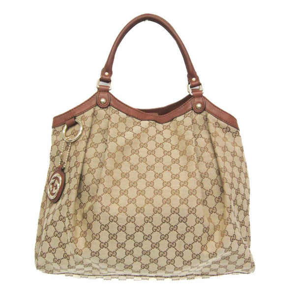 Gucci Sukey 211943 Women\'s Leather,GG Canvas Handbag Beige,Brown