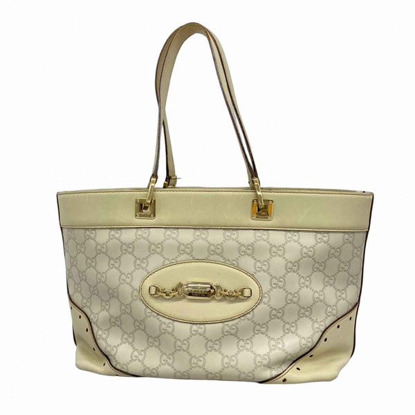 Gucci Tote Bag Guccissima 145993 Leather Ivory Champagne Women\'s