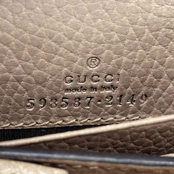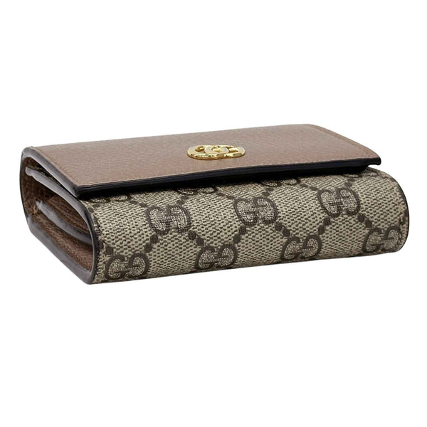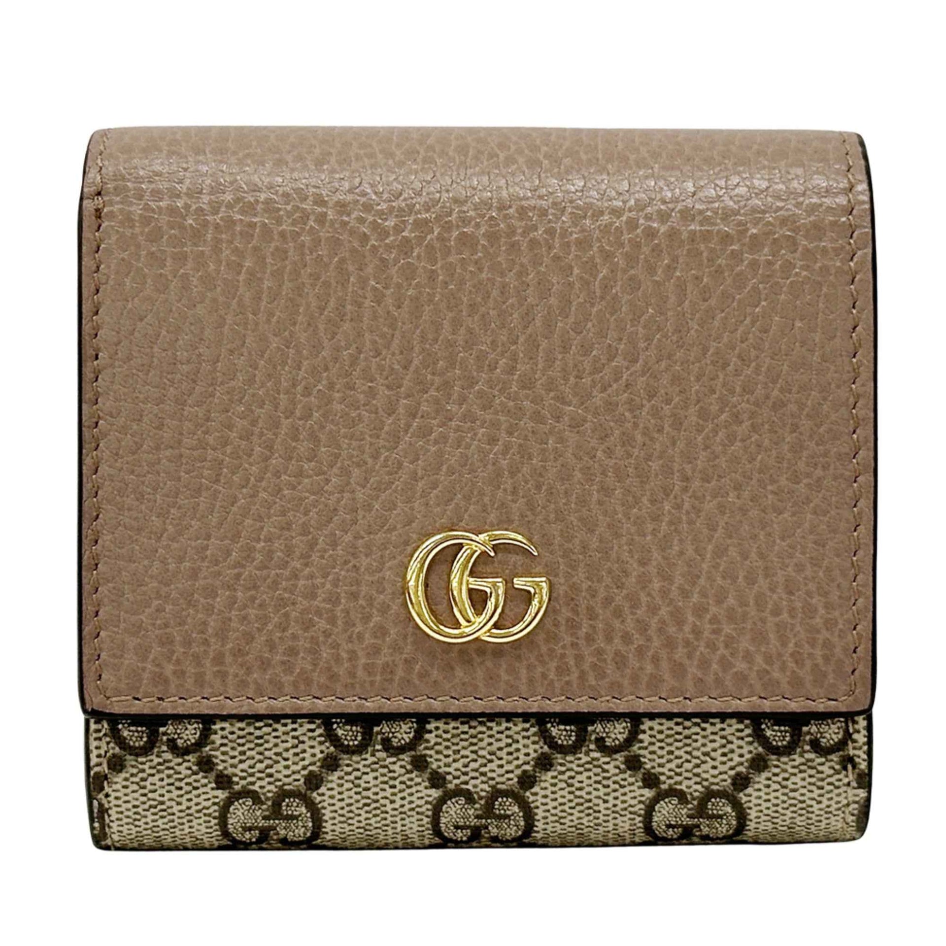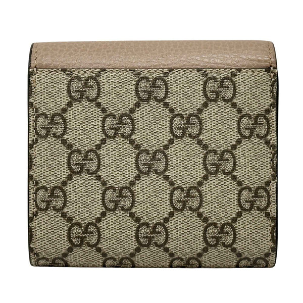 Gucci Women\'s Petit Marmont GG Supreme Tri-fold Wallet in PVC (Pink and Brown) 598587. This compact bi-fold wallet features the logo.