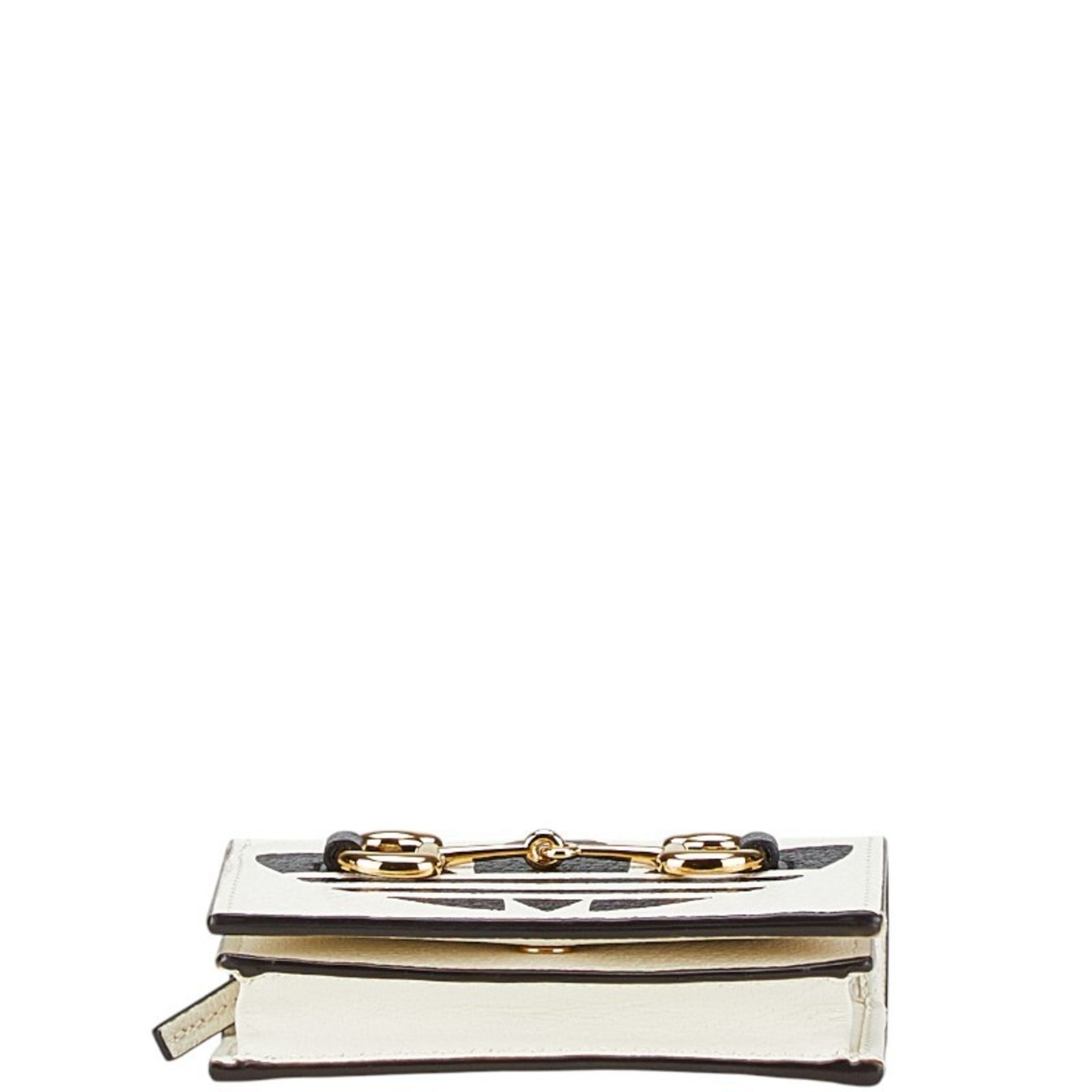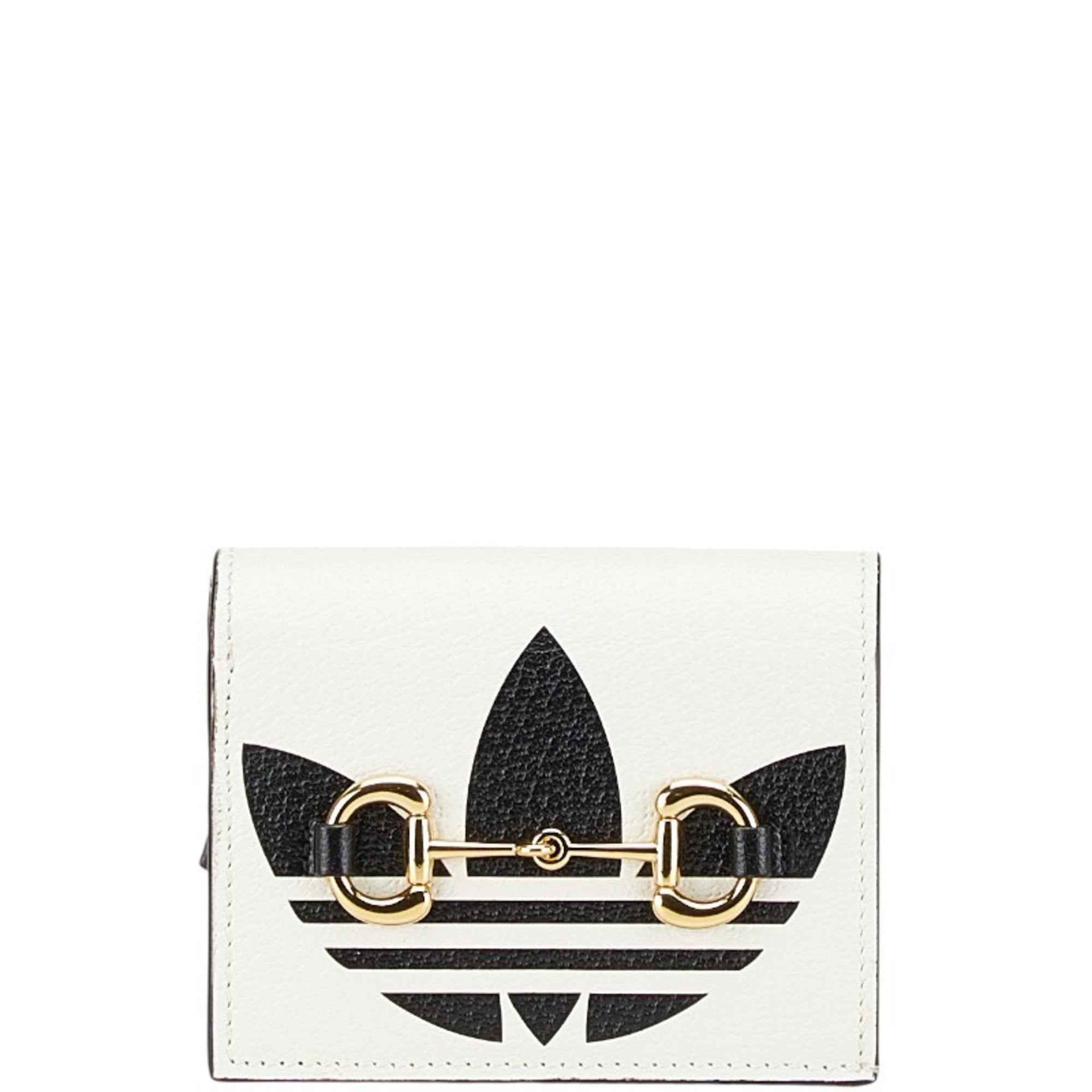 Gucci x adidas Horsebit Shoulder Wallet, Bifold 702248, White/Black Leather, Women\'s