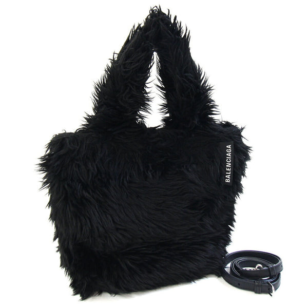 Balenciaga Handbag 581764 Black Fur and Leather Crossbody Shoulder Bag for Women
